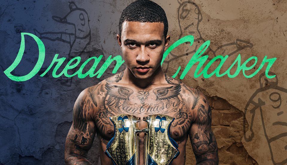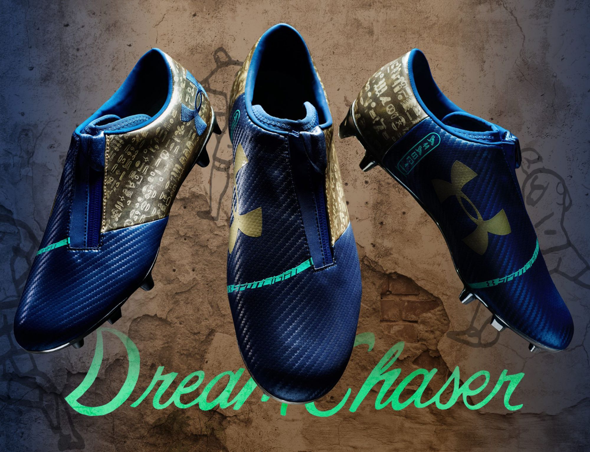 Under Armour has unveiled Dreamchaser, the new silo that will be used by Memphis Depay. The design is inspired by Egyptian hieroglyphics, that are both on the side and the heel, with a part golden part blue colorway.