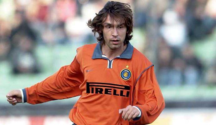 A very young Andrea Pirlo, still a playmaker, in Marcello Lippi’s Inter. The oversize style fully represents the 90s.