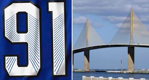 Creating a more contemporary and sleek aesthetic through bold color blocking, the uniforms are highlighted by a silver metallic film with four die-cut stars, one for each division, that allows the body fabric to show through. Accenting the color palette and jerseys, a custom-designed number font was inspired by the suspension cables of the Sunshine Skyway Bridge, a Tampa Bay landmark.