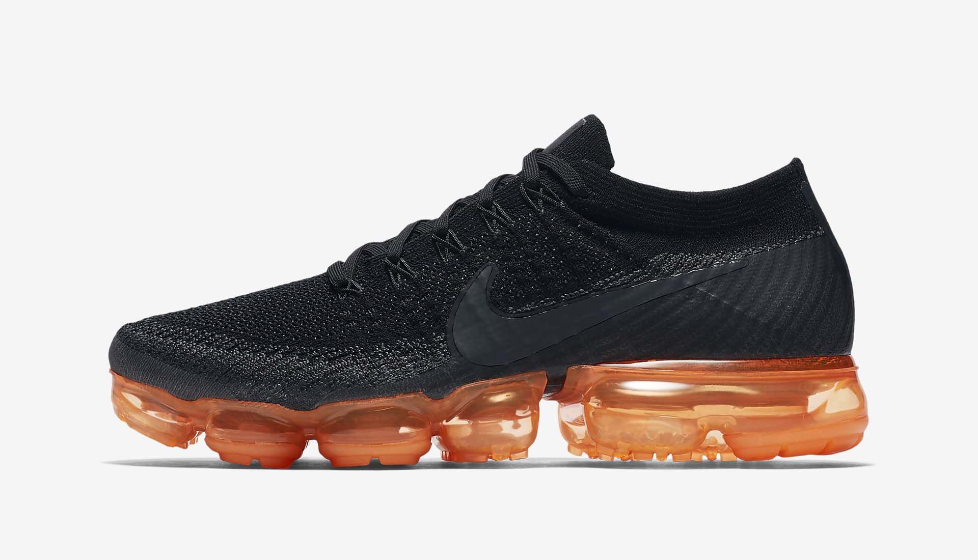 Inspired by the design of the Tiempo Legend 7 “Fast AF”, this Nike Air Vapormax sees its black Flyknit upper laid down on a “Rush Orange” cushioning system, creating a street version of the football boot. We know for sure that Swoosh footballers will take the pitch in the weekend with the new “Fast AF” pack, but they’ll also probably show up at the stadium with the new Vapormax at their feet, as it’s cool AF. And yes, it means what you think.