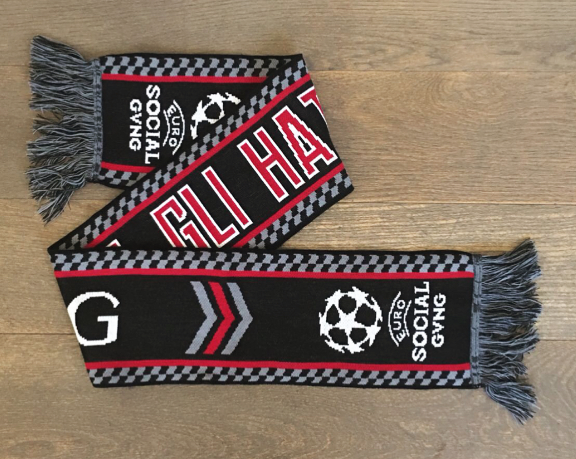 The main colors of the scarf are black and grey, with red and white detailing. Other than the classic Euro Social GVNG logo, inspired by the real Champions League one, the scarf has the “GVNG” and “Pissing on the haters” writings, a quote that can prelude one of the next gang collaborations, as it’s taken from Dark Polo Gang’s “Sportswear” song. This is just an hypothesis, but the certain thing is that in February and March we’ll discover the new shirts of the Rap Game Champions League’s teams. Stay tuned on nss sports and Euro Social GVNG’s social profiles for any update.