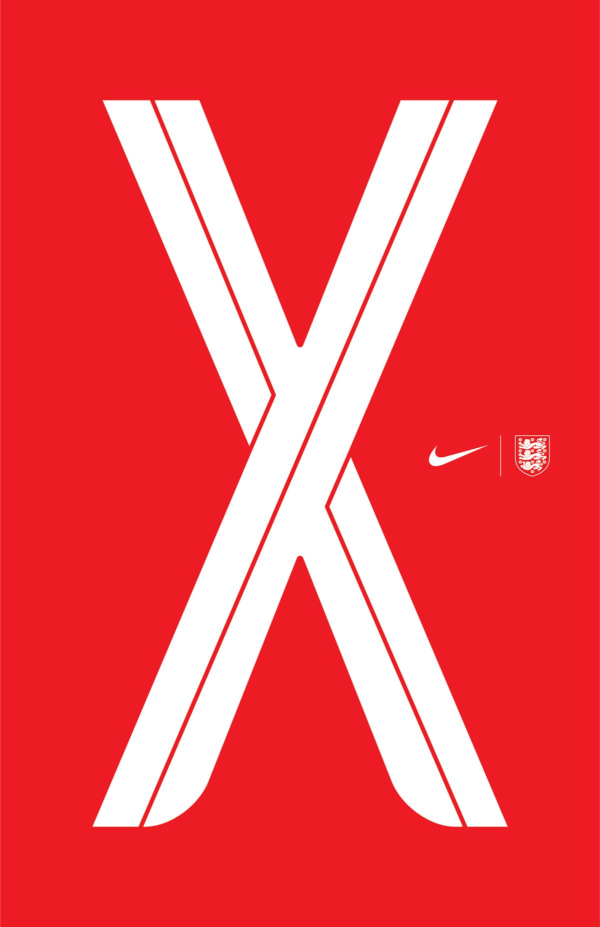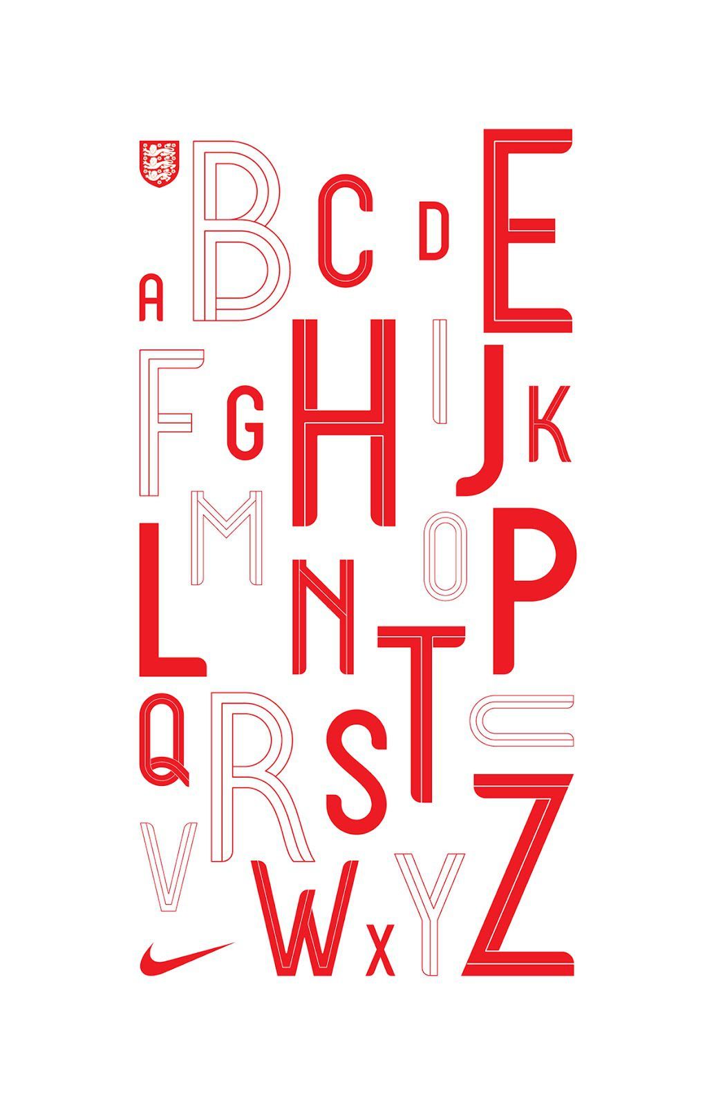 In an interview with Creative Review, Ward told the whole creative process of font design, from commission to final approval. The English designer - a great football fan - was about to miss the chance to design his national fonts: Nike contacted him in spring 2016 to commission the work on Linkedin, which Ward opened very rarely. Fortunately for him Ward opened his profile on the social and the answer was immediately affirmative. Nike's request was to create a dynamic and modern font that would keep a very British mold with the Saint George's cross as an identifying element of design.
