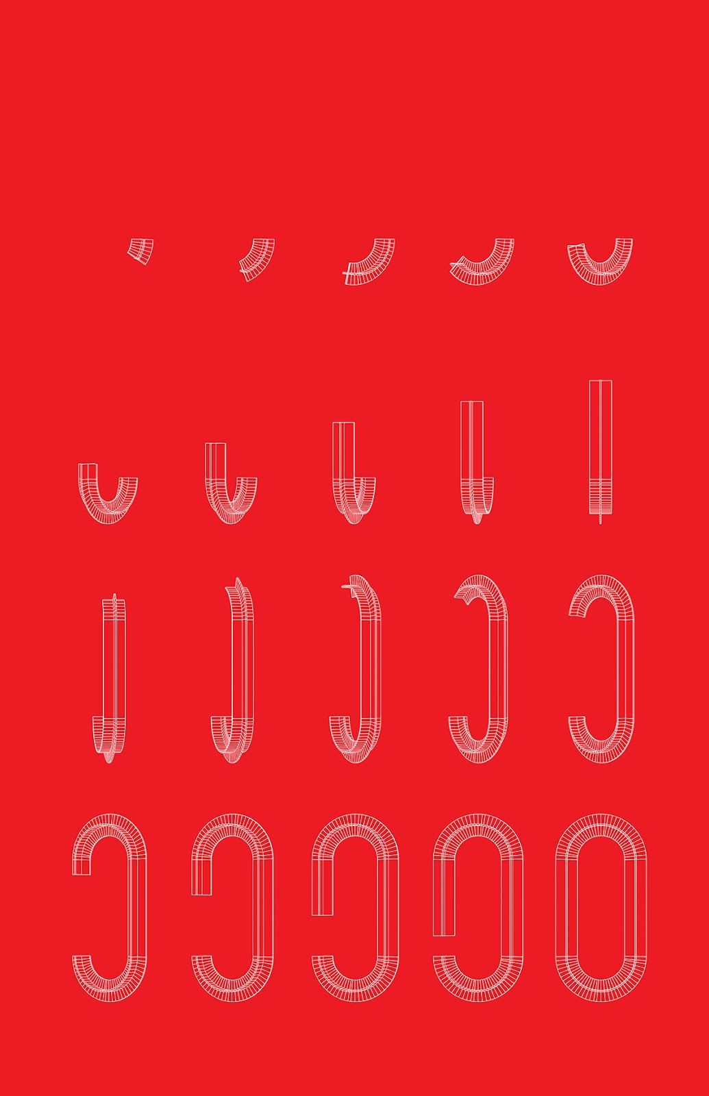 I really wanted to create something dynamic that hinged on the cross icon, so I modeled and animated the core of the type in 3D software. I created a simple grid, drew single line paths for the letterforms and added a cross as a sweep around the path, which went on to inform the inline aspect and the twists in the letters. I’m hoping that the movement that went into creating the letterforms comes through in the final pieces.