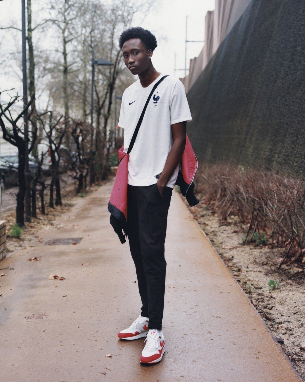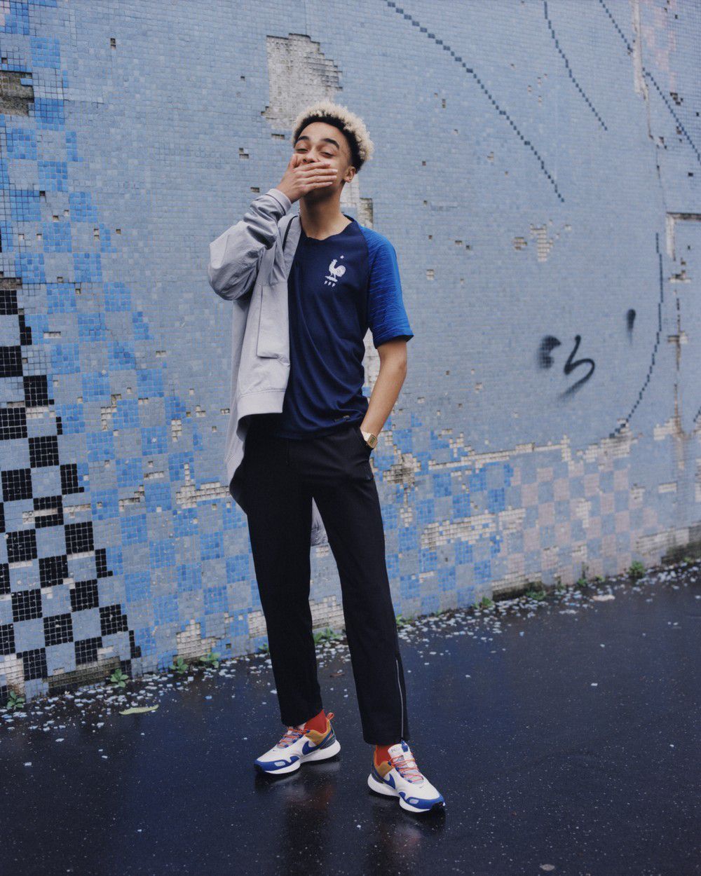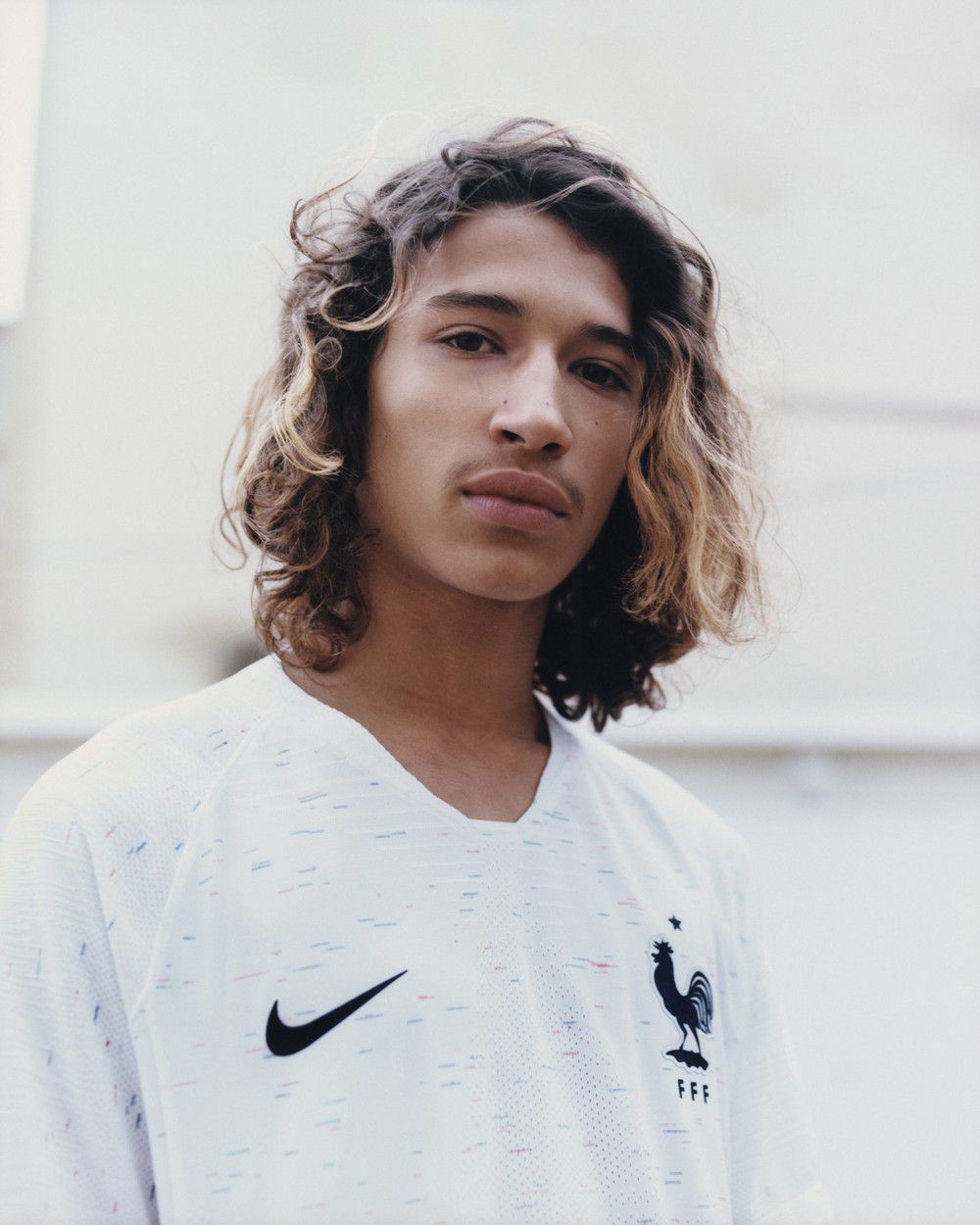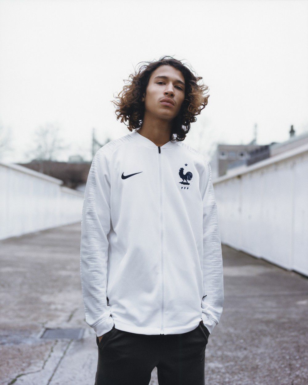 If the home kit is a direct celebration of the flag, the away kit serves as its deconstructed counter. At first glance, the shirt appears plain white. However, close inspection reveals a subtle red and blue hyper-speckle knit through the body. “We pushed the boundaries of knitting technology and unlocked the unique possibilities of yarns, colors and fabrics. The result is stunning,” explains Pete Hoppins, Nike Football Apparel Senior Design Director. this shirt was leaked by the New York Knicks’ 19-years-old Frank Ntilikina, that two days ago showed up at the Madison Square Garden wearing the new away shirt of the Blues.
