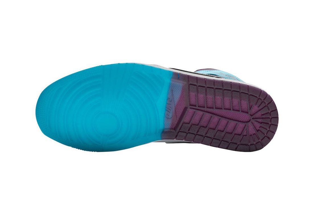 Recently, the AJ1 has been used to homage Michael Jordan’s career, as happened with the Chicago Bulls-themed one. This time, the sneaker is presented with the color palette associated to the Charlotte Hornets, the team MJ owns, Teal/White/Purple. The colors are divided between the gum sole, the premium leather upper and the shoelaces.