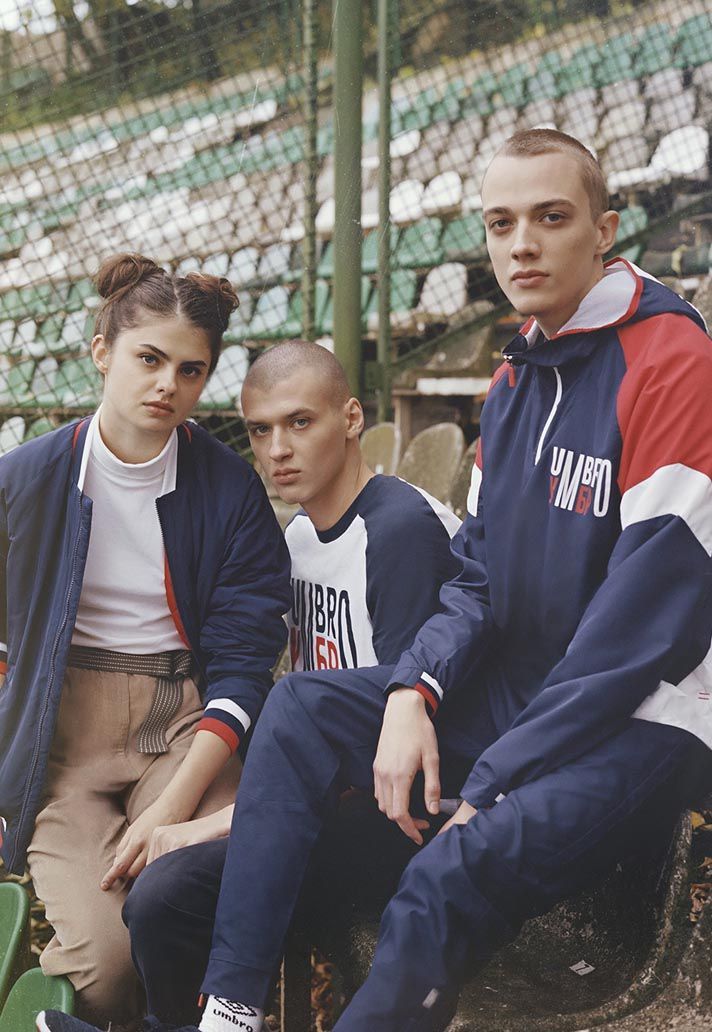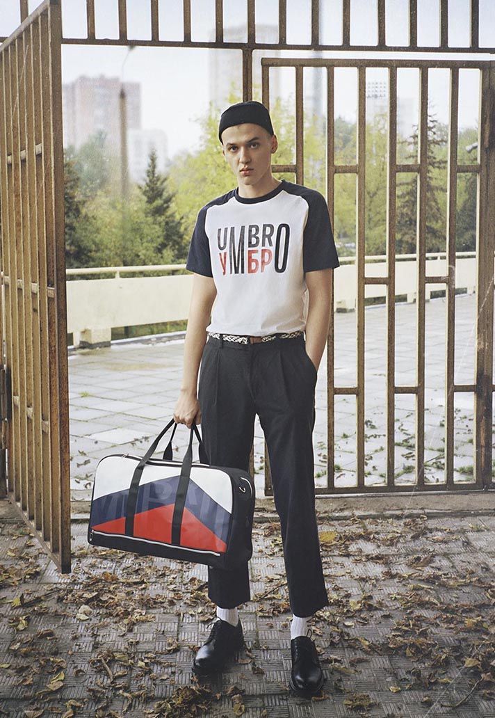Umbro collection is divided into two parts: one, called “Missing Team”, uses the colors of the Soviet flag, mixing the retro sportswear with Russian streetwear aesthetic - something like the Gosha Rubchinskiy x adidas Football collabo - with an alternative version of the logo using the Soviet font. The fifteen blue dots represent the participant nations to the 1966 World Cup, while the red one represents Russia, the only team not to wear the Double Diamond. The other part of the collection is called “Lev”, homaging the legendary Russian goalkeeper Lev Yashin, and it’s mainly black, as the Soviet goalie used to be called “Black Spider” for his habit to wear black in every game.