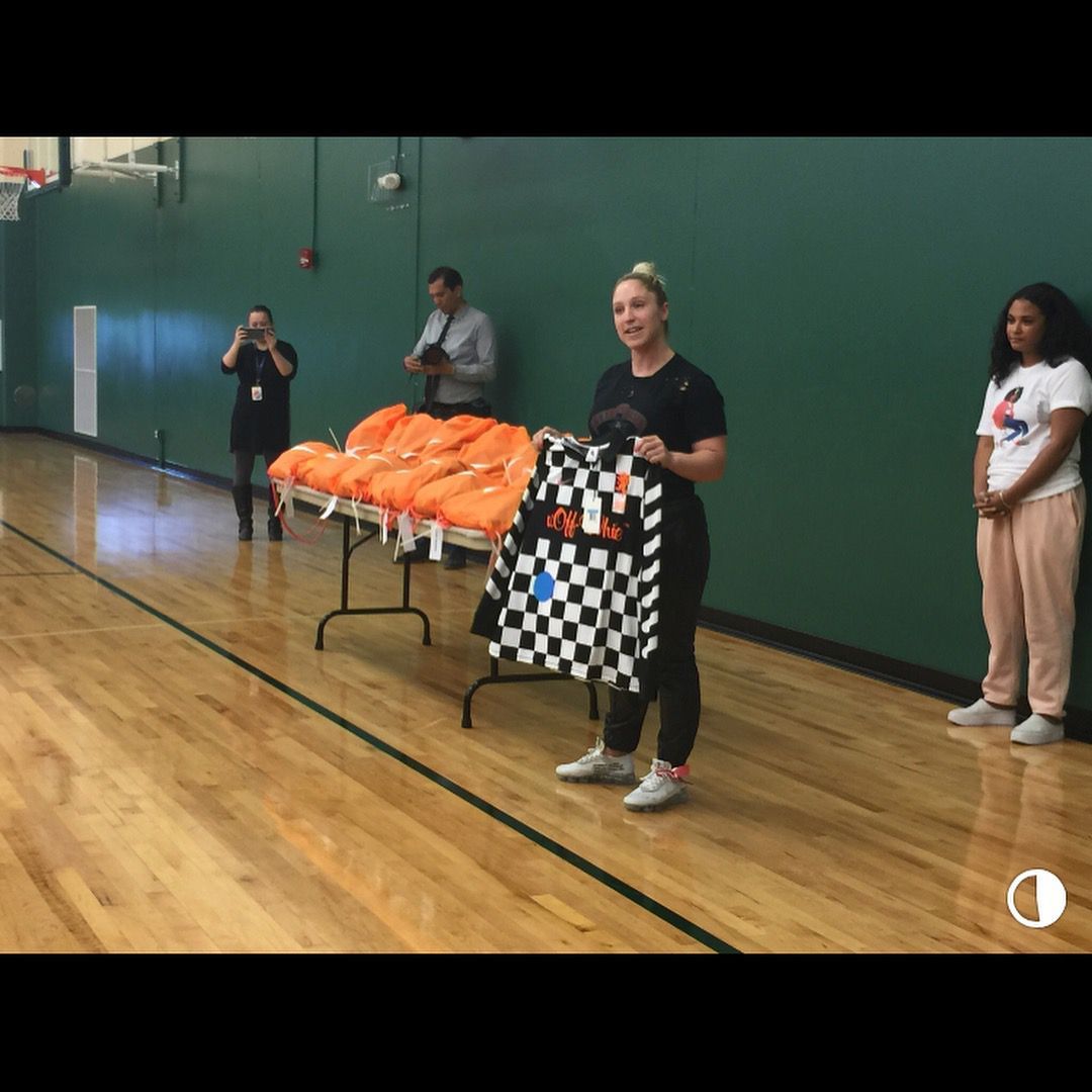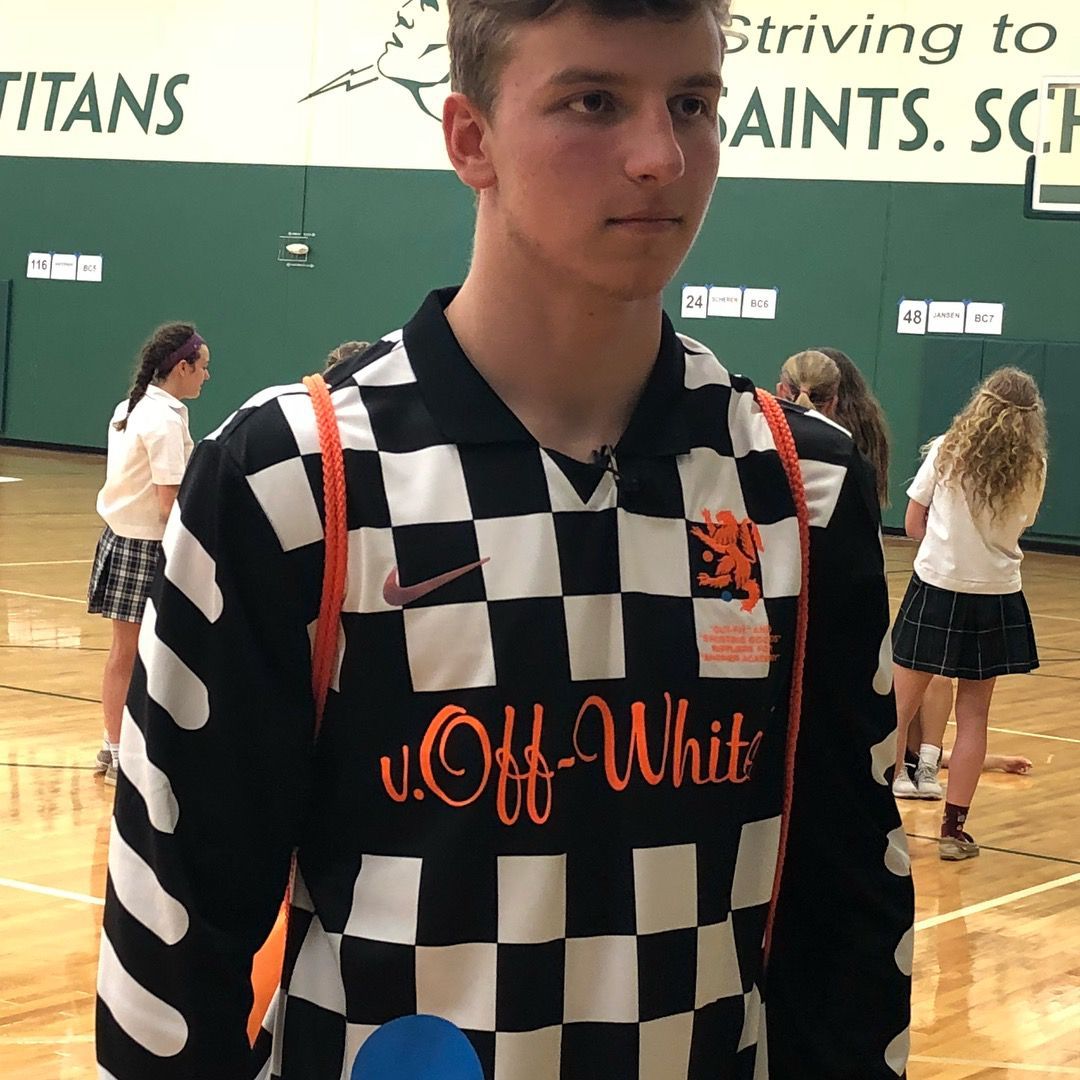 Actually, thanks to Instagram we also discovered another white shirt, but this time with orange details. The Boylan Central Catholic High School, Virgil Abloh’s alma mater, has published some pics about the shirts that Louis Vuitton artistic director has given the school. And while the boys wore the chess-patterned one, the girls were given with the white version, completed by orange writings and branding. The hype the surrounds the Off-White x Nike Football collabo is still rising.