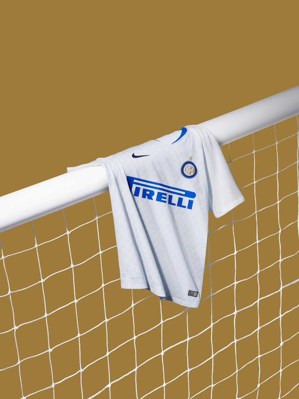 That pattern appears again on the Nerazzurri’s new away shirt — the jersey is a crisp, clean white (consistent with Inter’s historical change color), enriched with an elegant woven graphic. The crest on the back nods to the past of the club while also telling a modern story. The badge on the new away shirt is trimmed with gold and placed on the left-hand side. Meanwhile, the neckline celebrates the club’s iconic home colors, with one side of the v-neck trimmed with blue, the other black. Pete Hoppins, Nike Football Apparel Senior Design Director, commented on the new shirt.