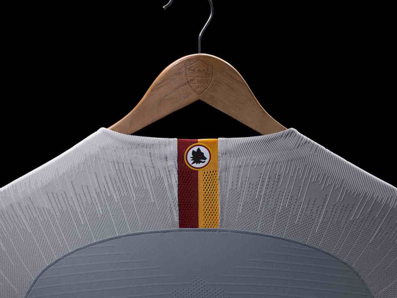 The Lupetto, that made its first appearance in 1978 and the last one two seasons ago, has been placed in the back side of the necklace, where there also is the only color section of the shirt, two vertical red and yellow stripes. “This kit is quite simply a color story inspired by the wolf,” explains Pete Hoppins, Nike Football Apparel Senior Design Director. “A classy wolf grey kit fits well with the mythology surrounding the city and how the club places great value on this important symbol. The Lupetto is iconic for the club. we have used it as an outer pride feature.”