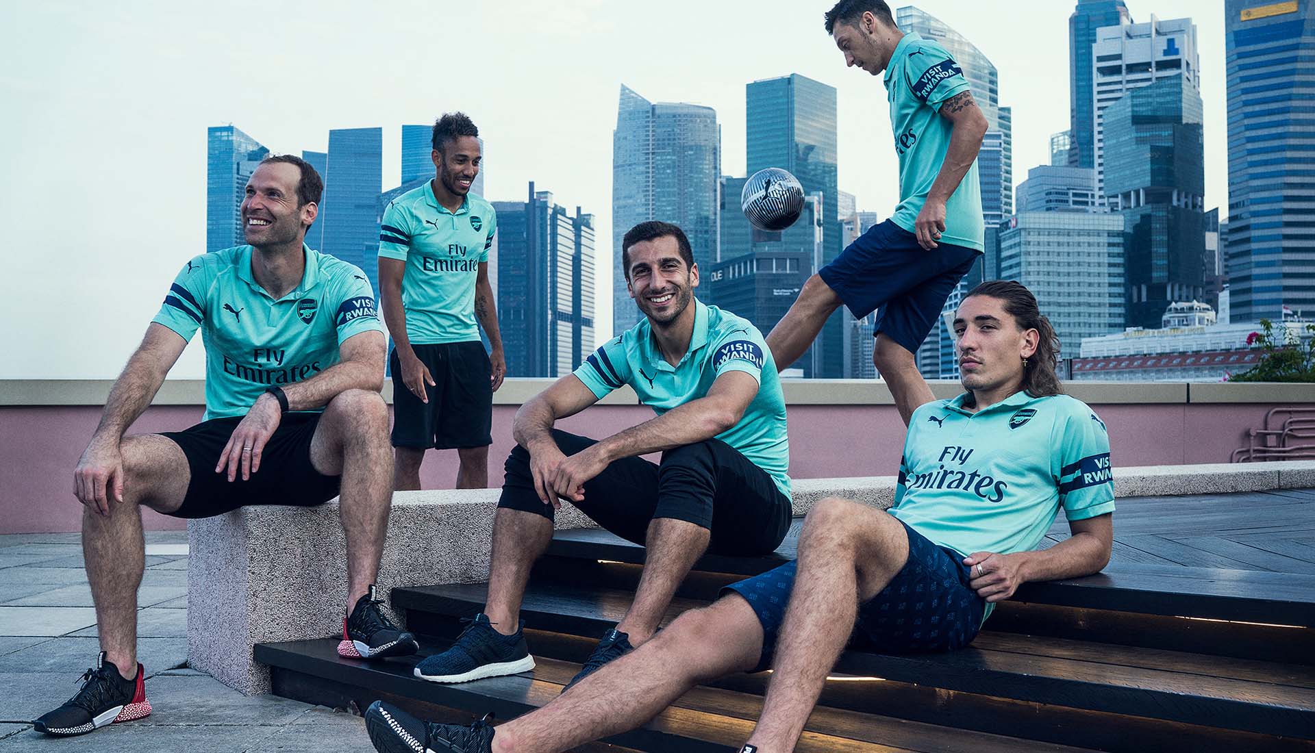 After launching home and away shirts, Puma has chosen an original scenario like that of Singapore to present the third Arsenal jersey for the 2018/2019 season. Photographed among the Asian city skyline, where the Gunners are on tour for a few days, the testimonials of this photo shoot were Pierre-Emerick Aubameyang, Mesut Ozil, Peter Cech, Henrik Mkhitaryan and, of course, Hector Bellerin.