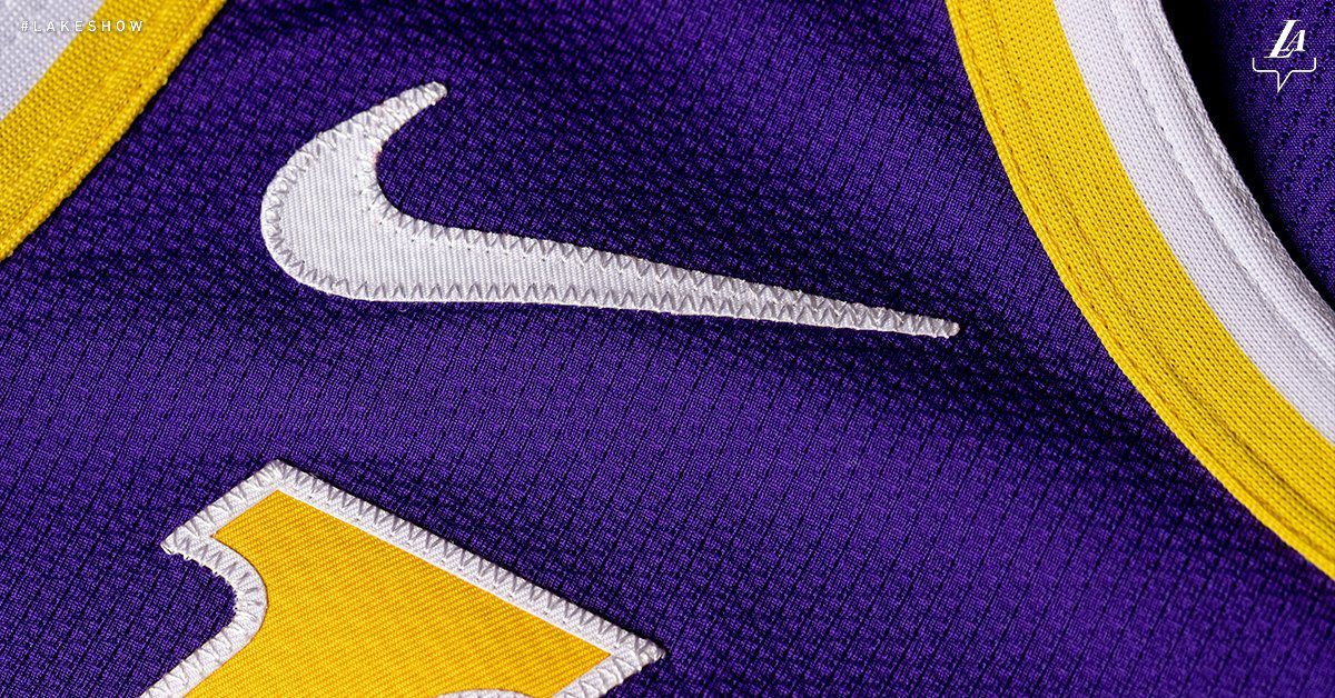 The jersey made to represent Lakers' letter of (winning) intents is the one that will most likely make all purists' noses turn. While the purple part with yellow writings and font - here with a white shadow - follows Lakers' legacy, things change in the black side section, which might attract negative comments from the most fussy supporters.