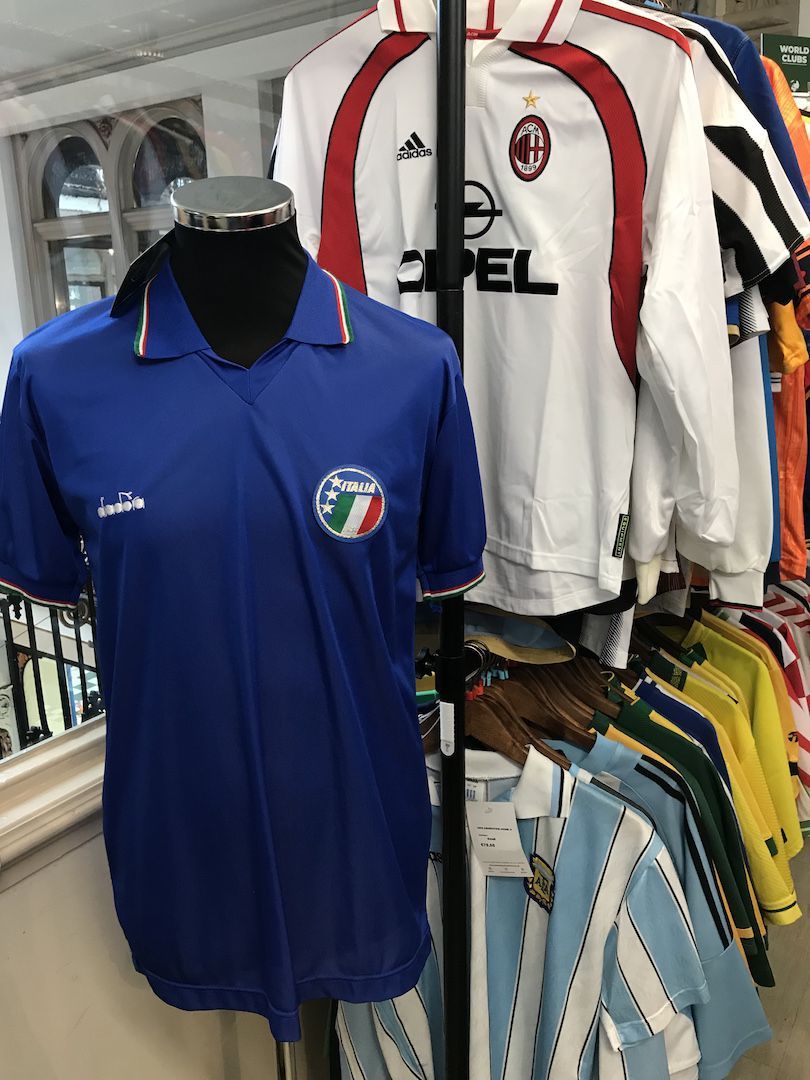 Shirts, of course, are all 100% original (even if some customer is surprised when the shop clerk reassures him, maybe perhaps he's not in an official store and thinks it's impossible!) and are divided in an orderly manner: in addition to the classic ones we find in the appropriate room, and at the 'clearance' mentioned above, there is a section dedicated only to the English ones, one to those of the national teams and one to the two clubs of Manchester, United, and City. Although there's a continuous flow of people heading towards the cash desk with full hands, the stocks of jerseys seem never-ending, and Paul tells all those we see for sale come from: 'Many jerseys we buy from collectors of all over the world, which are often unaware of the value they have in their possession; many others we buy directly from clubs, brands or shops, and we often do him a big favor because otherwise, they would not know how to sell them, a problem that always happens much more often when suddenly the technical supplier changes'.