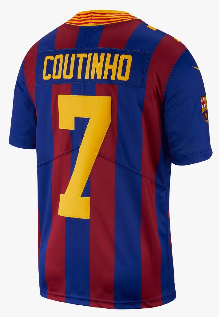 After the first release concerning the Chelsea shirt with the name of Eden Hazard on the shoulders and that of Tottenham with that of Harry Kane, the protagonists of the second drop are the two Brazilians Coutinho and Neymar. The jerseys are slightly different, although in both the number (the 7 in the blaugrana shirt and the 10 in the O'Ney's one) is printed both in the front and in the back, together with the name, while the badge and the Nike logo are on the right sleeve. That of the Paris Saint-Germain also contains the numbers on the shoulders, and is embellished by the detail of the fleur del lis on display, under the collar. Barça's instead has vertical stripes and a characteristic 'Catalan' collar. Now the question is the following: Nike will propose an NFL version for Inter too?