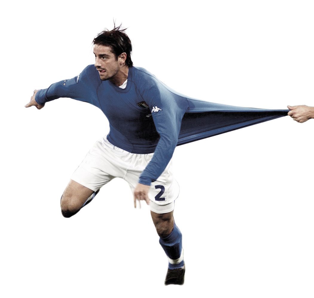 Robe di Kappa Sport's dream was to sponsor the Italian national football team and look for a new expression of technicality. The occasion happened after the end of the Nike contract with the Italian national team, after the France World Cup in 1998. Emanuele Ostini came up with the idea of taking inspiration from the world of surf, its completely slim sweaters, and thus changing the classic fit of the traditional jerseys, fluttering, oversize and elaborate in design.