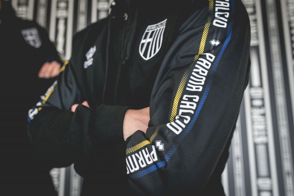 After the great work done last summer with the jerseys, Erreà has dedicated a new capsule to Parma Calcio, one of its top teams for the 2018/2019 season. The Stripe iD collection is in some ways ingenious and allows you to customize the garments (t-shirts, sweatshirts, polo shirts and suits) with the name of the team, the city or the heritage on the side band on sleeves and trousers, using the color that you want, but above all by strengthening the concept of identity.