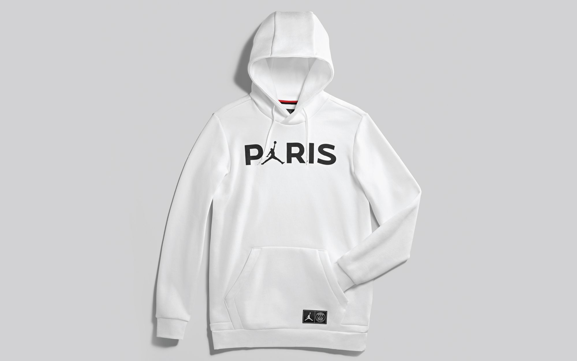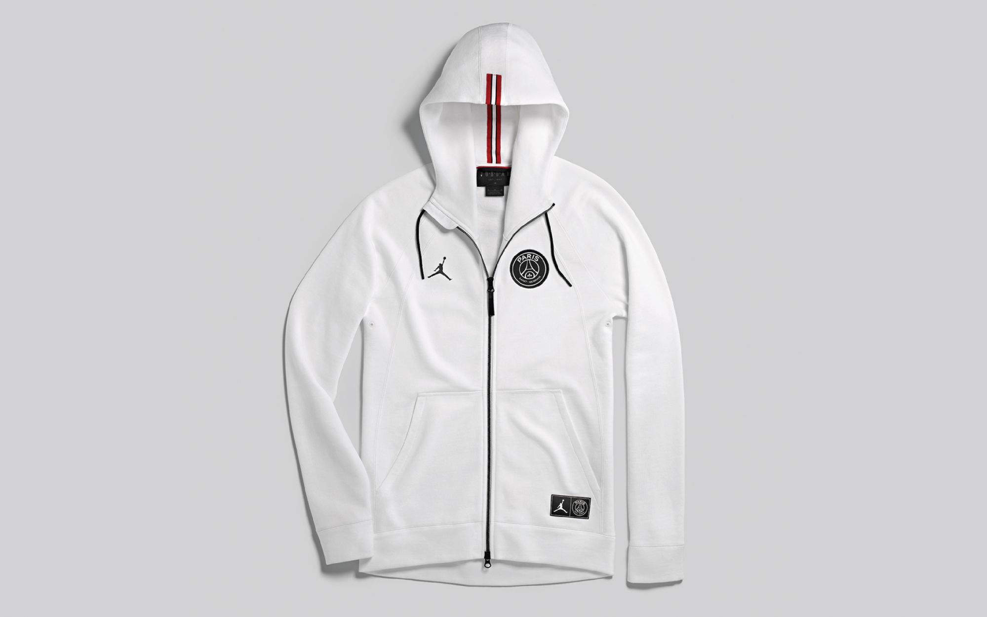 Yesterday was presented the second part of the collection between Paris Saint-Germain and the Jordan brand. From the total black of the first part, presented in September for the season debut in the UEFA Champions League, we move on to an entirely white line, which leaves room for only a few color details. Just the red band placed inside the collar and hood, also in the official home jerseys of Neymar and his teammates. The collection consists of 14 items for a wide variety of shapes and fabrics, from nylon to softer fabrics such as for tees and sweatshirts. It is not hard to believe that the success of the first part of the collaboration will be confirmed also in this case, moreover, it is the first ever partnership between the basketball brand and a football team.