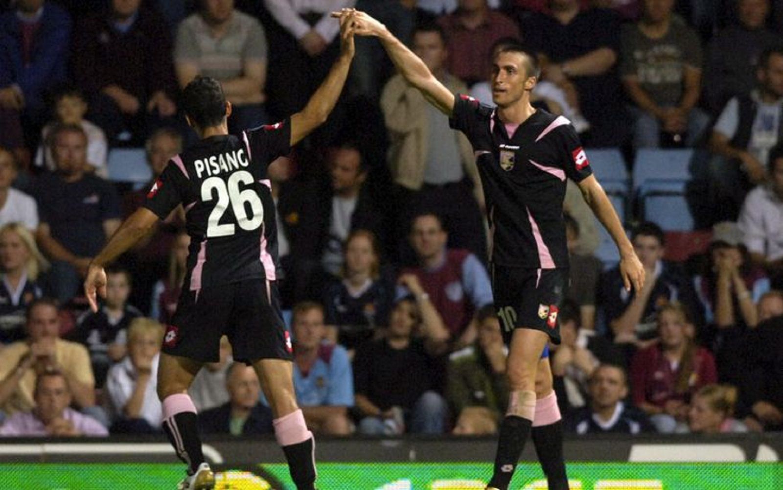That year Palermo knocked once again at Europe doors, after its qualification for the UEFA Cup groups after they eliminated West Ham on the first round. The team in before managed by Guidolin, then by Gobbo and again by Guidolin, ended penultimate in the hard group with Fenerbahce, Celta Vigo, Newcastle, and Eintracht Frankfurt, however, they were capable of taking advantage of that showcase to show up the inverted colours variant of their home jersey for that season, exposing a black shirt with some pink stripes on the corners and on the sides and the crest right in the middle. Which was the sponsor? Lotto.