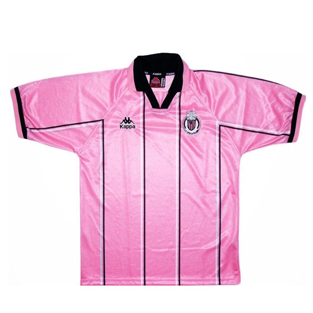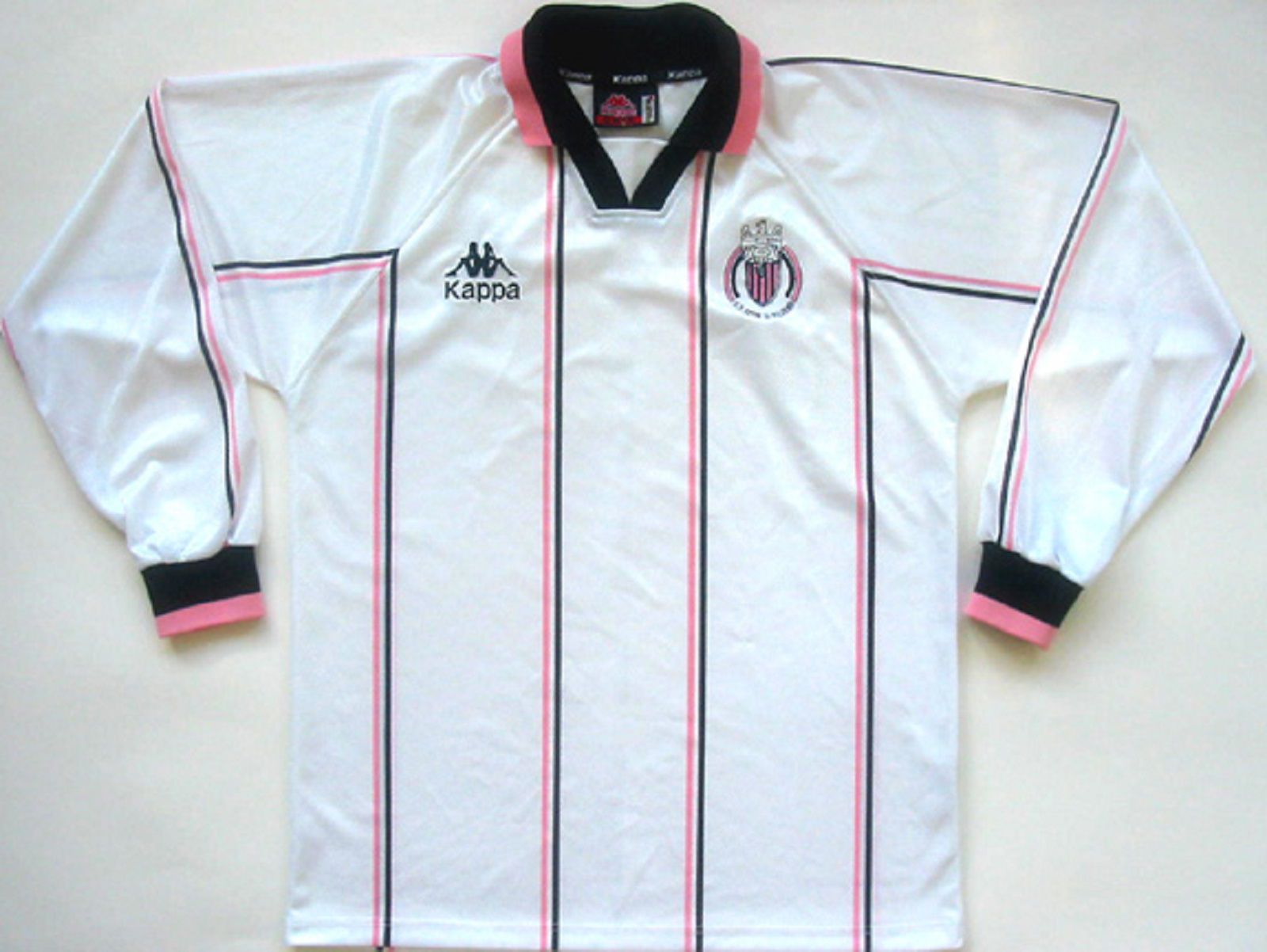An authentic collector's item was the Palermo's kits produced by Kappa in the 1998/1999 season. The one we select is dedicated to the away matches. The jersey dyed white, pink and blank, see a white background ridden by four slim rosanero stripes united and separated by a flap of white. The insets on the sleeves and the beautiful collar complete it all with the badges. On the right sleeve, we have the Sicily's region crest while on the right front we have the Kappa logo embroidered black with a slim pink flange.