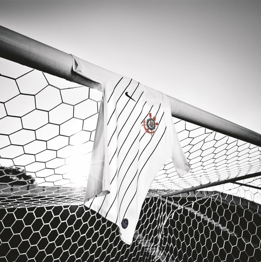 To celebrate the season in which the most representative Brazilian footballer in modern football wore the Corinthians jersey, Nike has produced a clean kit, white with 9 vertical black lines, a significant number, a tribute to Ronaldo as well as the logo printed inside of the collar. in the chromatic cleanliness of the black shirt and shorts, the team's red crest stands out, with the anchor, symbol of water sports practiced by the sports club.
