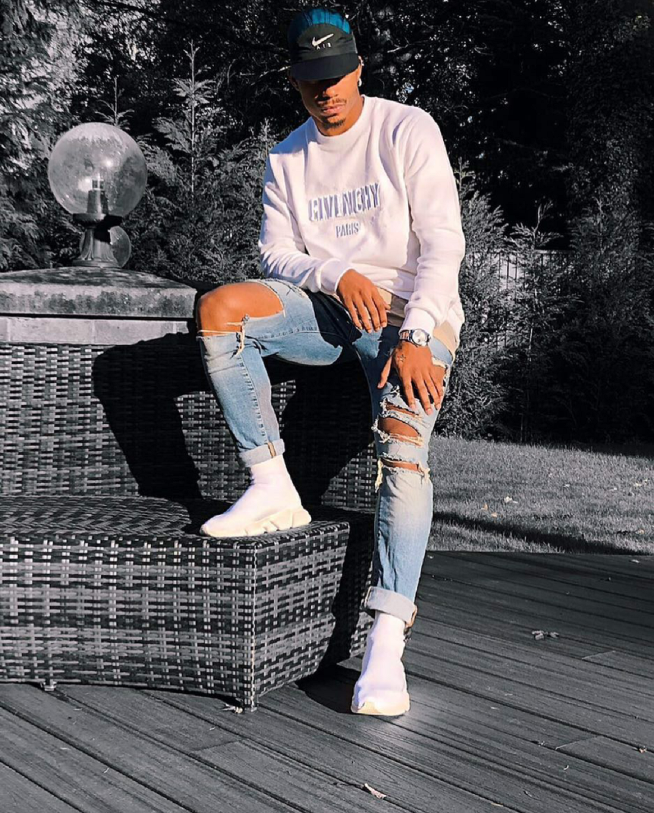 What do rappers and footballers have in common today? Amiri! Sweatshirts, t-shirts and above all skinny jeans from the Iranian designer's brand, Mike Amiri, have been invading social media for a couple of years, bringing to light a surprising passion for footballers towards tight denim, treated and washed in a thousand versions.