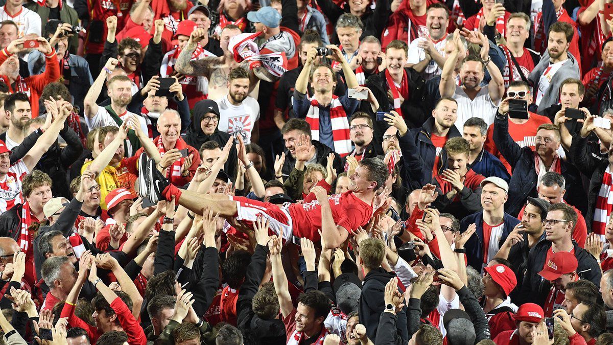 A team of this kind, so compact and proud and with a faithful community always at its side, could only live with the fans the most beautiful moment, that of the final whistle that sanctioned the promotion. The field invasion (absolutely peaceful) that happened at the end of the game was an exciting moment that went around the world. Also because the players, as well as the coach, are anything but famous: on the bench there is the former Basel Urs Fischer, in the field the brother of Toni Kroos, Felix, and many interesting young people. The secret this year was to suffer as few goals as possible, a difficult task given the average goal of the Zweite Liga, and then also a bit of luck, see goalkeeper Gikiewicz's goal against Heidenheim.