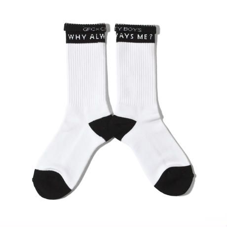 The leit-motif of the capsule is the famous motto 'Why Always Me?' and the relative celebration: there are three basic t-shirts (one white, one black and one camouflage) in which on the chest appears a very small flex of Mario who celebrates with his bare chest and showing his muscles for the historic goal scored against Germany; and two pairs of socks with the same colors.