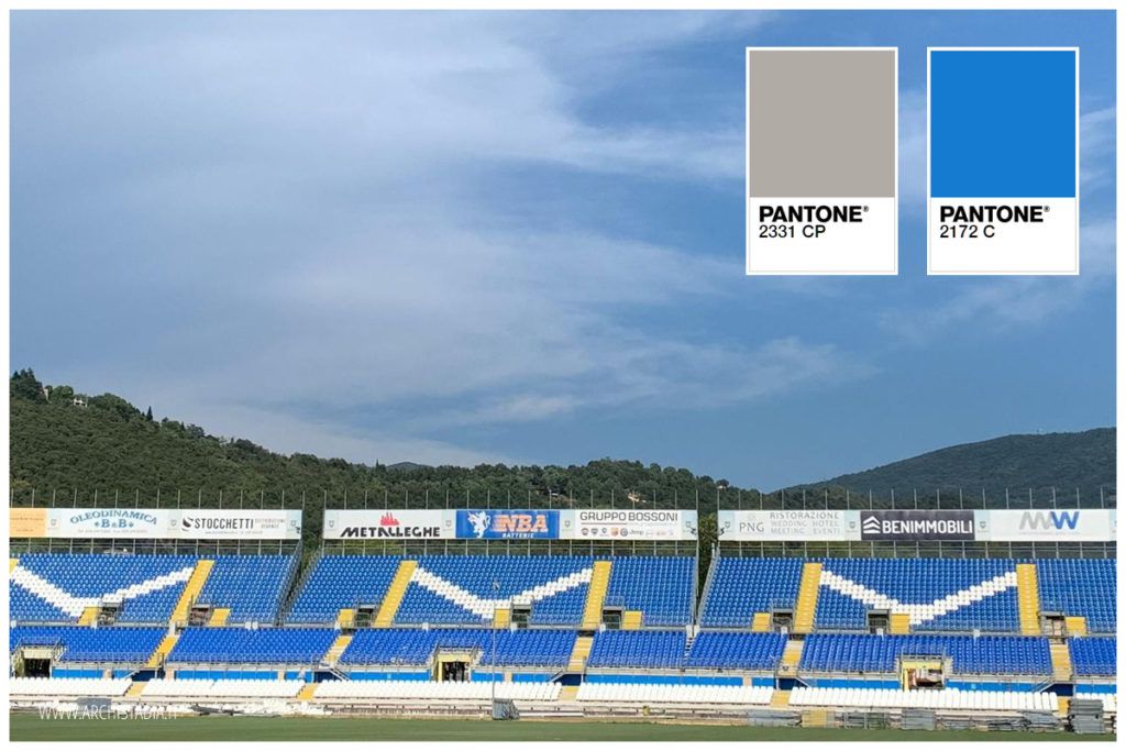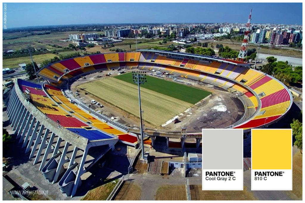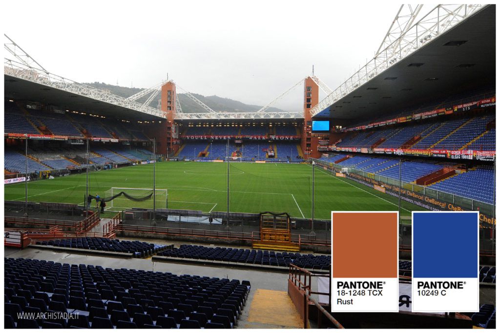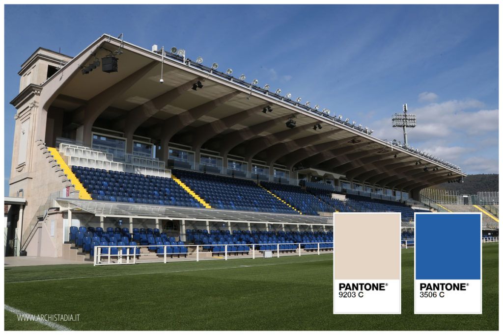 A few months ago, taking inspiration from of the brilliant idea of CP Company and Lack of Guidance, we had cataloged the Premier League stadiums through the Pantone system, thus combining each venue with the corresponding color in the well-known international catalog. Recently the specialized portal Archistadia has realized the Italian version of this experiment, combining the colors of the Pantone system with the Serie A stadiums based on their visual impact. This time, however, the extrapolated colors are two: the one on the left represents the external structure while the other chosen, on the right, has been chosen as the main expression of the internal development of the tiers of seats or other fundamental details such as the large horizontal beams adopted for the coverage, in the case of San Siro. You already know all the Italian stadiums: among these there's also the Bergamo's Gewiss Stadium which is still a construction site, while as you already know AC Milan and Inter Milan, Lazio and AS Roma, Genoa and Sampdoria share the same ground.