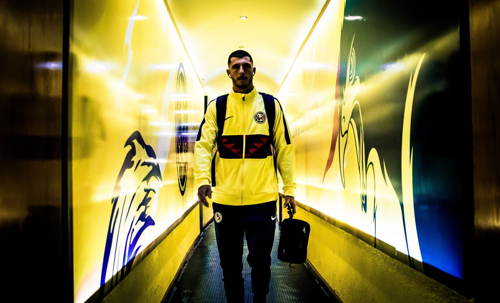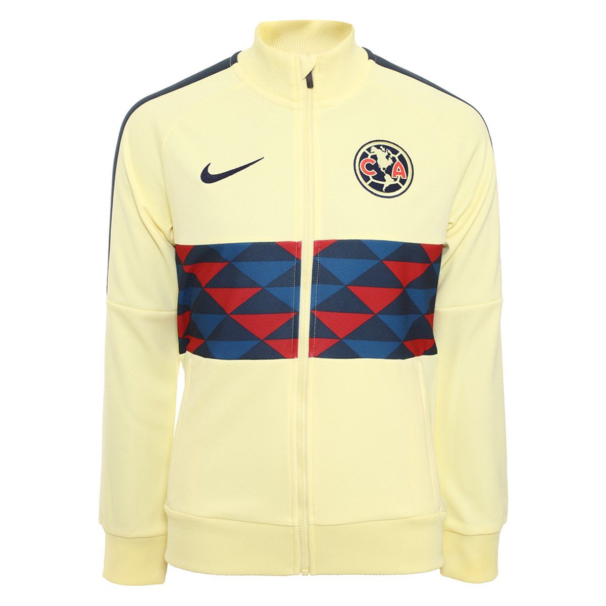 Club América's anthem jacket is for who loves simplicity and colours, with a dominant yellow background and a blue central band where the geometrical multicolour pattern typical of the Mexican club stands out. Then, two blue stripes cross the shoulders and a part of the arms.