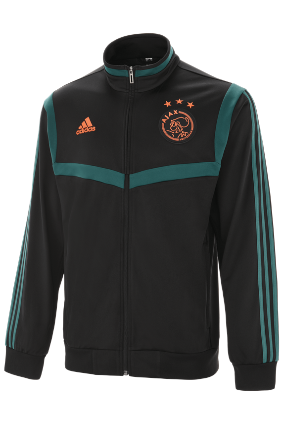 The adidas template for the pre-match jackets isn't really cool this year, despite this Ajax's anthem jacket shows off how with an intelligent use of the colors it's possible to create something interesting. The German brand three stripes are green, like the accents on the collar, the horizontal stripe that starts from the shoulders to cross the chest, while the crest, the main sponsor and the adidas logo are orange: so the pre-match jacket of the Dutch become attractive.