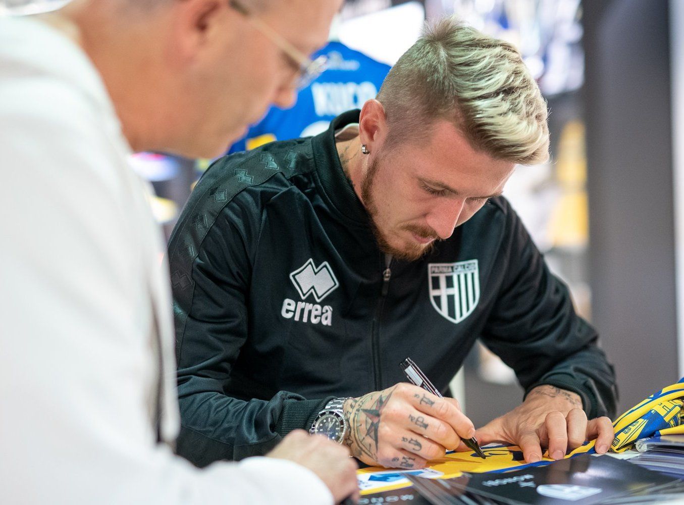 The streetwear vibes of Parma's home anthem jacket are unique in this list. Erreà. did an excellent job on this item, black with white details, enhanced by a band with the repeated logo on the sleeves and the gialloblu Arabic Phoenix - main detail of the third kit - on the back, in addition to the bomber jacket style collar.