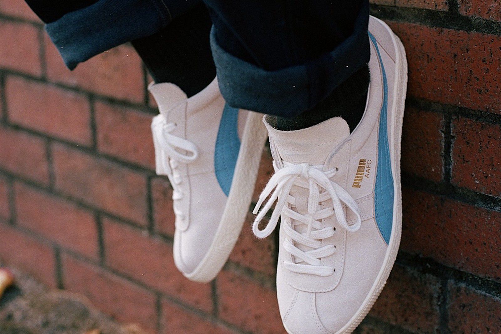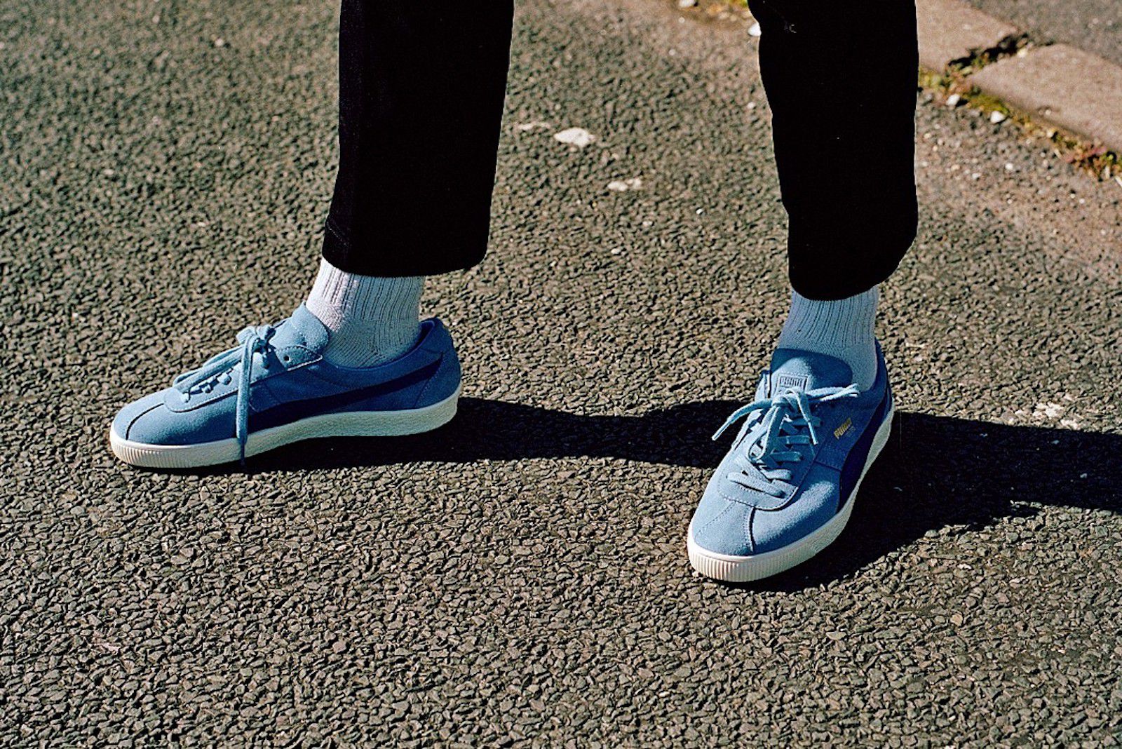 The PUMA capsule for Manchester City's 125th anniversary Four archival sneakers customized with the symbols of the English club