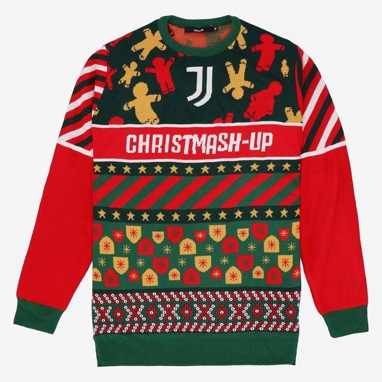 The Juve's Christmas collection includes about 25 products: not only jumpers, that don't feature the green-white color scheme embracing red and yellow and presenting a new with a traditionally Christmas symbol such as the gingerbread man, but also t-shirts, cups, pyjamas and different accessories to give to your parents and friends. This year the slogan is - in 2018 it was 'Level Up Your Christmas' - 'Christmash-up', to express the value of integration, through a mix of black and white and bright colors.