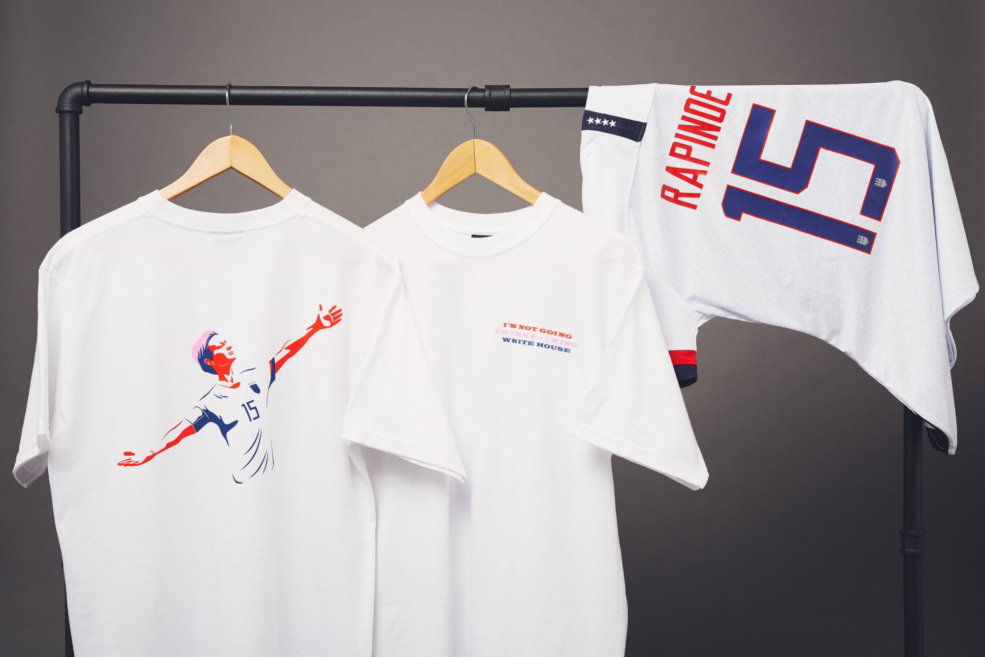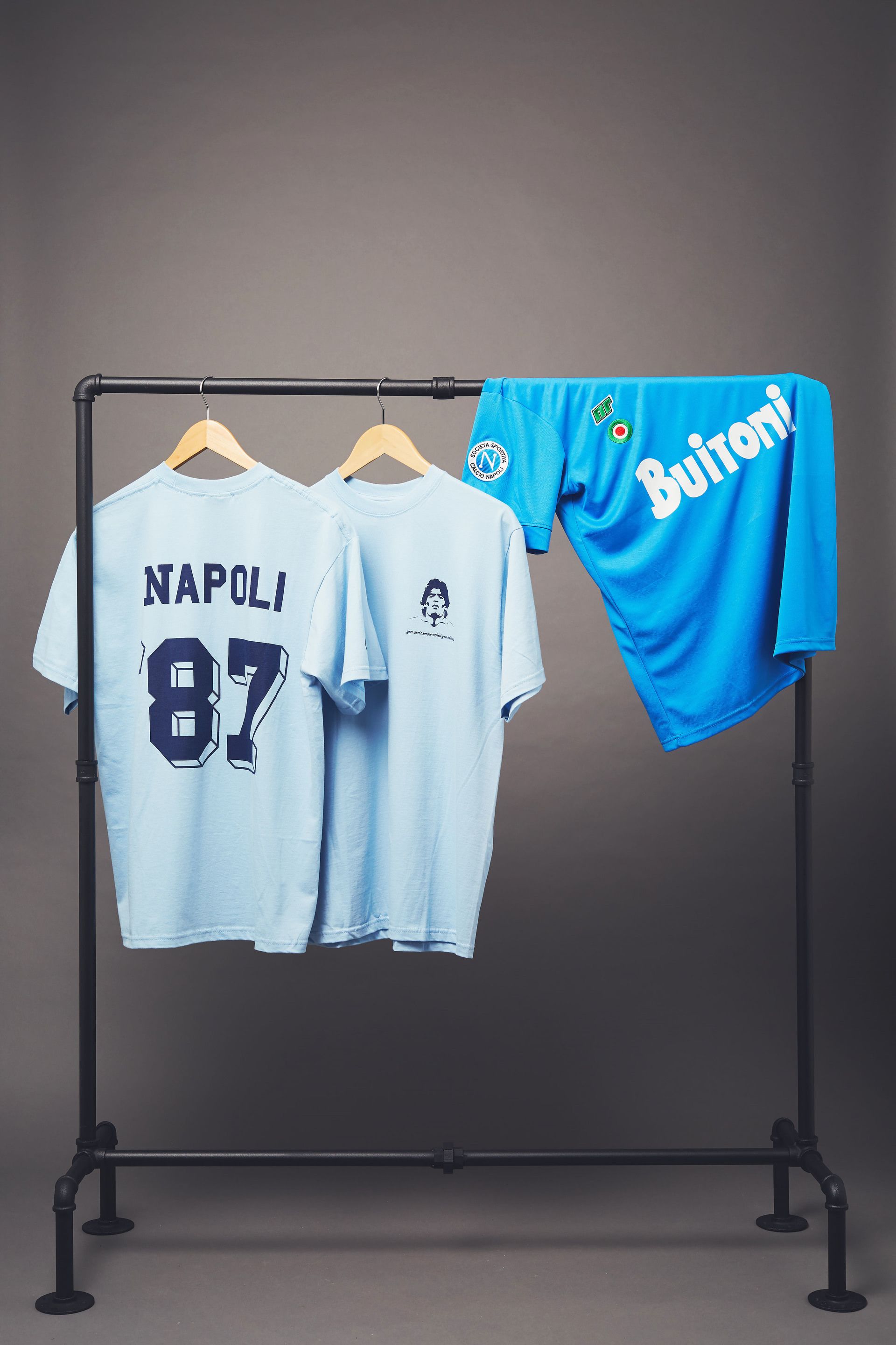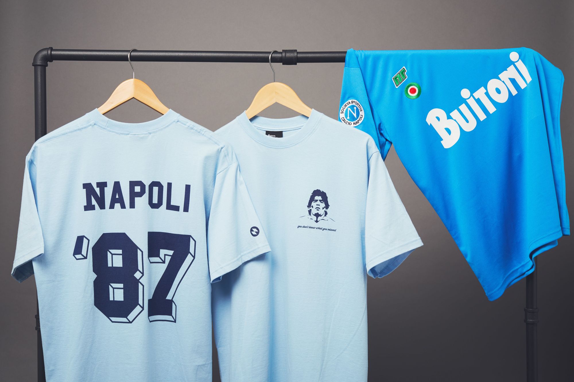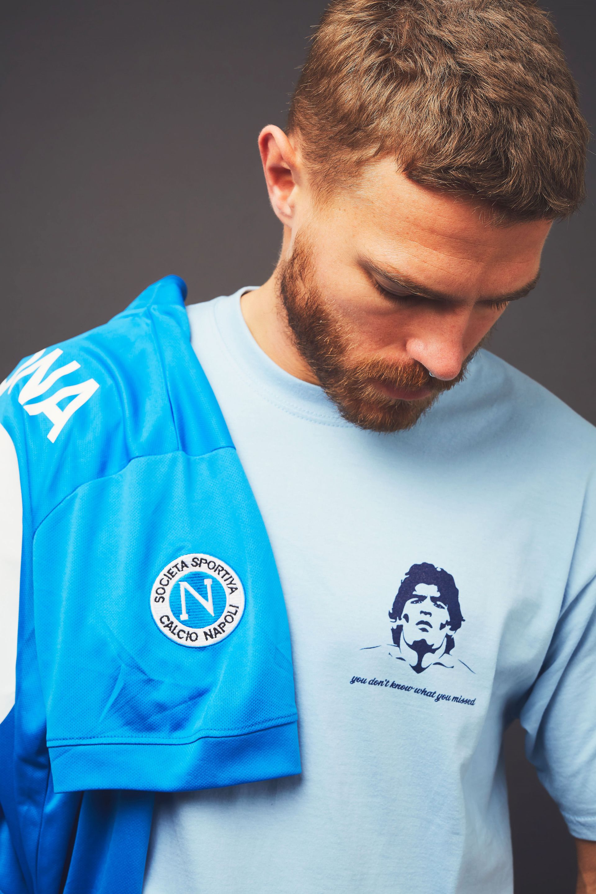 The last two t-shirts recall two distant moment in the history of football. The first one is linked to Megan Rapinoe and it features her typical celebration on the back while in the front part the popular quote 'I’m not going to the f**king White House' when she refused to go to Trump’s White House after bringing home her 2nd World Cup in 2019. The secon t-shirt is inspired by Maradona and Napoli's Scudetto in 1897, with the claim 'You don’t know what you missed'.