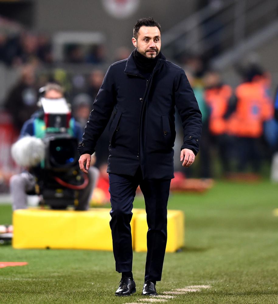 Sassuolo's manager has declared he totally took inspiration from Pep Guardiola, in fact, his look reminds of that one of the Spanish coach, despite it does so with very bad results. De Zerbi tries to look juvenile and trendy with some brave and dubious choices, but he's improving: he was wearing the C.P. Company goggle jacket on the occasion of the recent match against Roma and this is really appreciable.