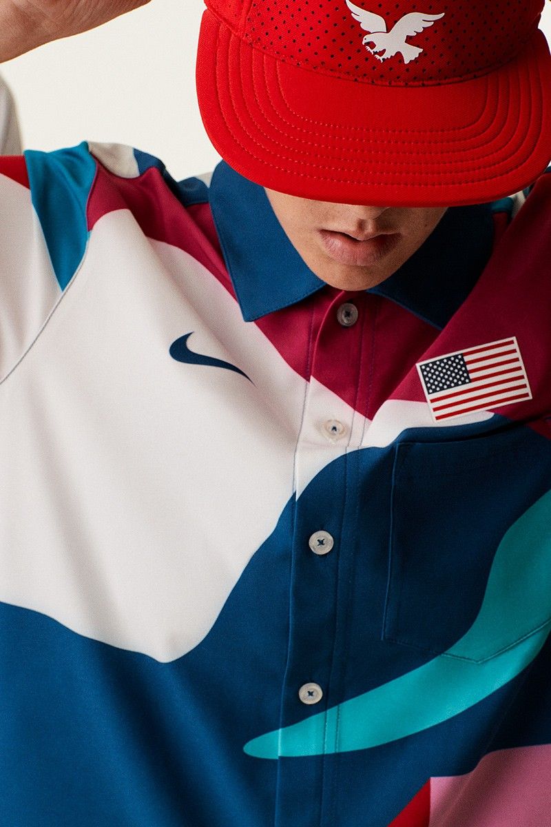 Each shirt has a colorful landscape design - a Piet Parra signature - identifying the country it represents: inspired by a traditional basketball shirt, the United States Nike SB x Parra shirt represents freedom; an eagle is sewn on the lower left, while the country identification code is located on the left sleeve. The France shirt is instead a hymn to the traditional tennis polo, representing hope and faith; a rooster is sewn on the left chest, while the French flag appears on the left sleeve. Taking a cue from their national sport, Brazil will instead have a pseudo football shirt with a toucan sewn in the lower left part of the shirt to represent happiness. The Brazilian country code "BRA" is also found on the left sleeve.