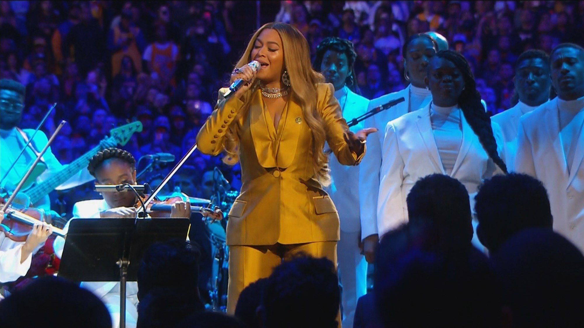 I’m here because I love Kobe, and this was one of his favorite songs. So I want to start that over but I want us to do it all together. I want you to sing it so loud, he can hear the love. Are you all ready? I love you.