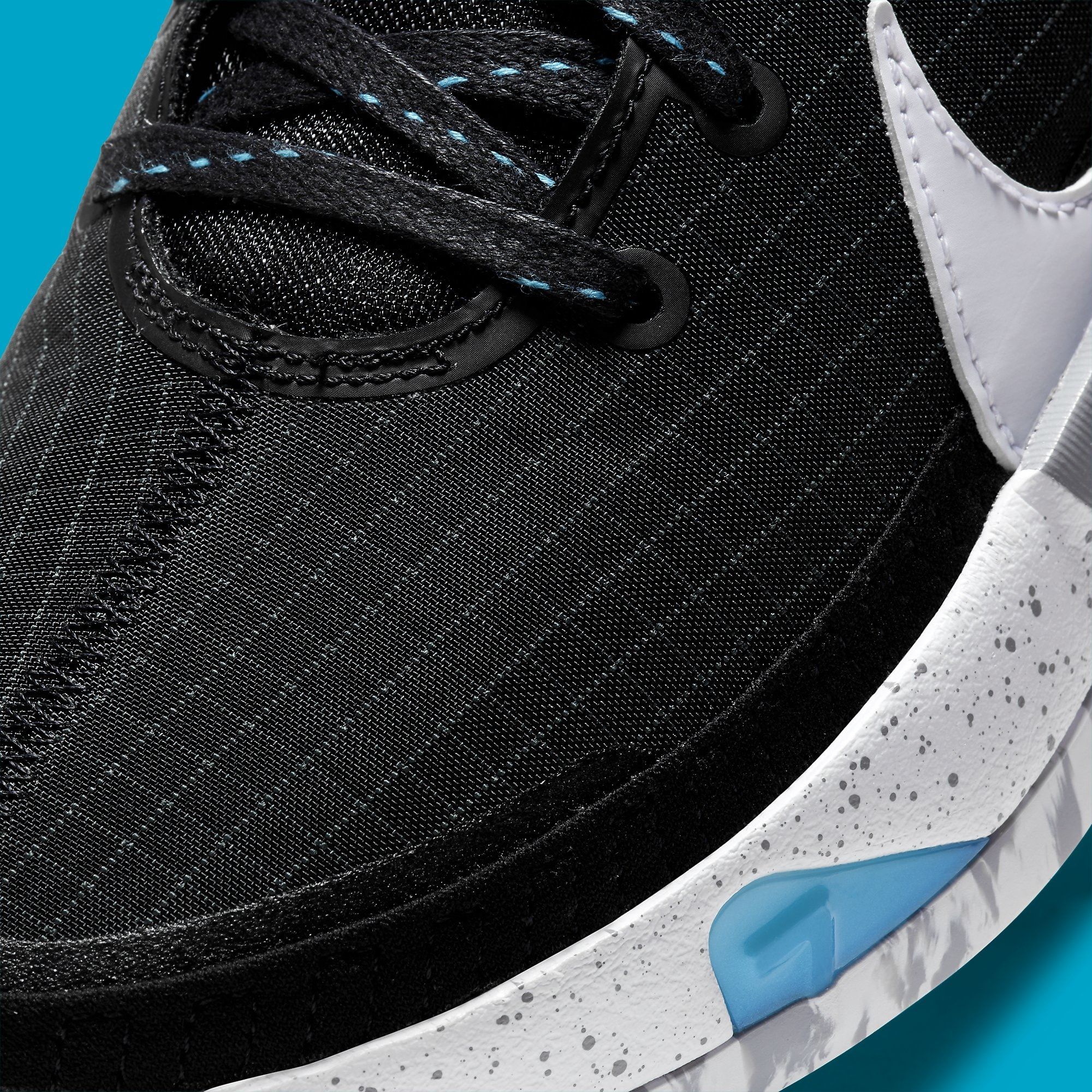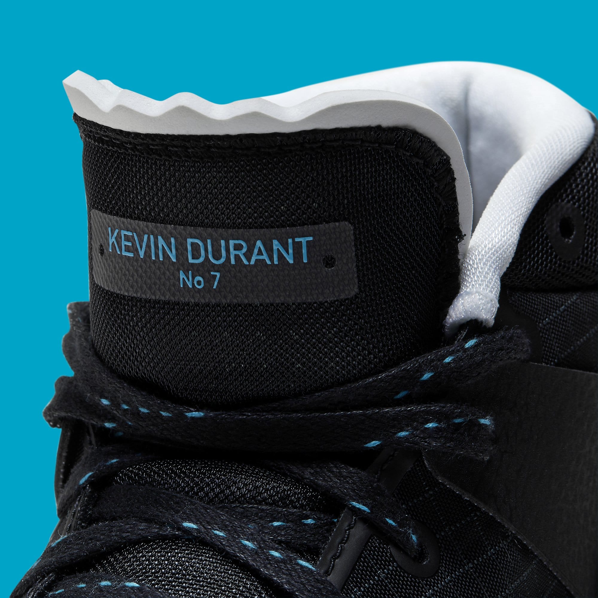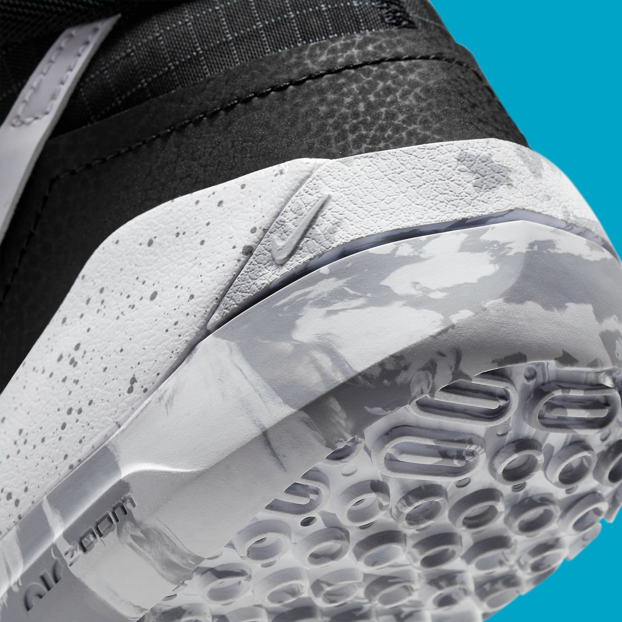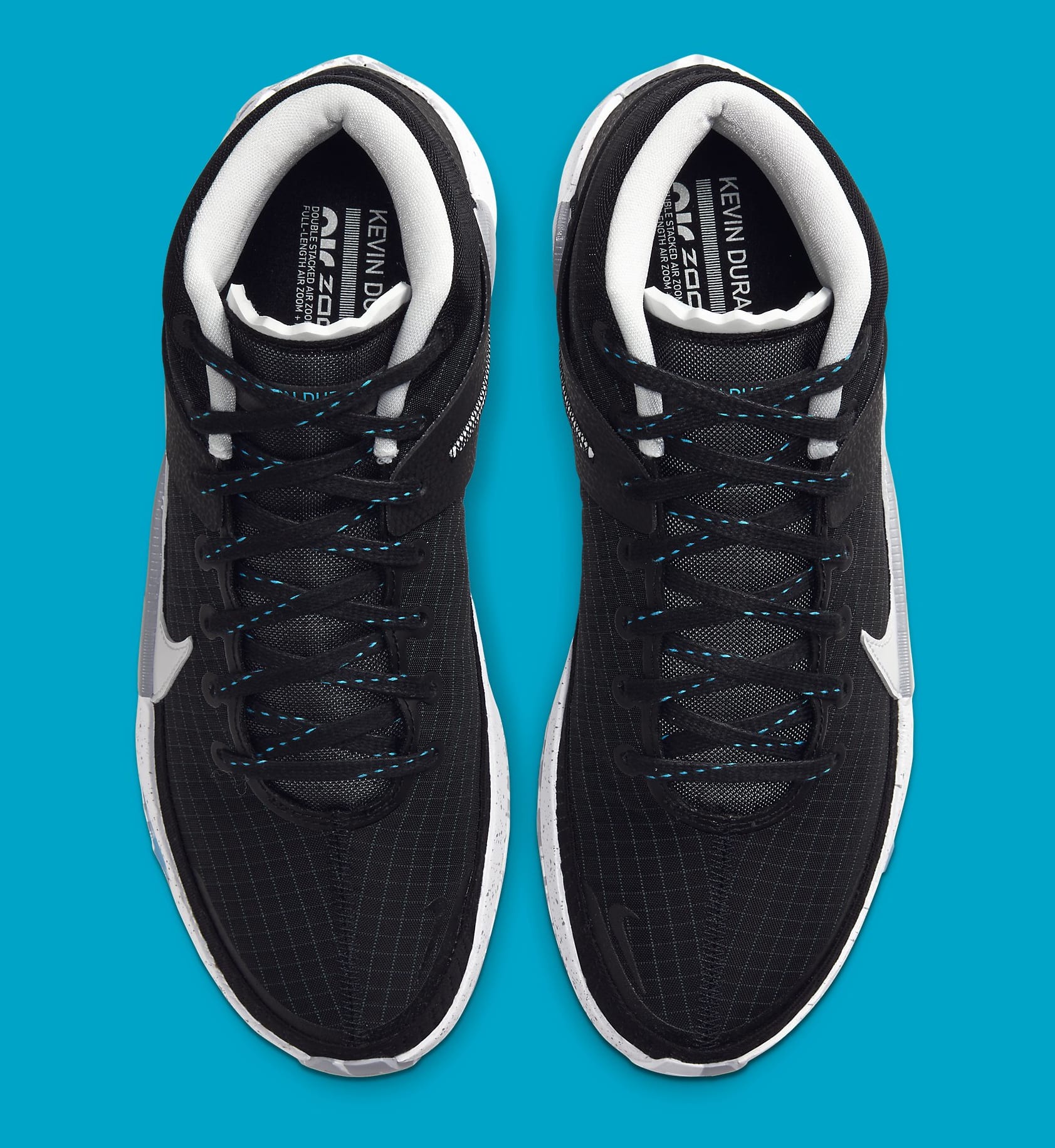 The line is very reminiscent of that of the KD12, although it can be immediately recognized that the materials used are less translucent and much more targeted to the performace, with few Nike details and technologies more present: a black fabric upper with a grid pattern and overlapping materials in the central part of the support while a large lateral white Swoosh descends towards the white and gray spotted midsole. The branding is kept thinner on the medial side, with a small white Swoosh stitched backwards. From the cushioning point of view, the KD13 uses a double layer of Air Zoom technology under the sole of the foot and a full-length Zoom footbed, offering a feeling of support and reactivity that brings with it the Zoom Strobel technology of the KD12.