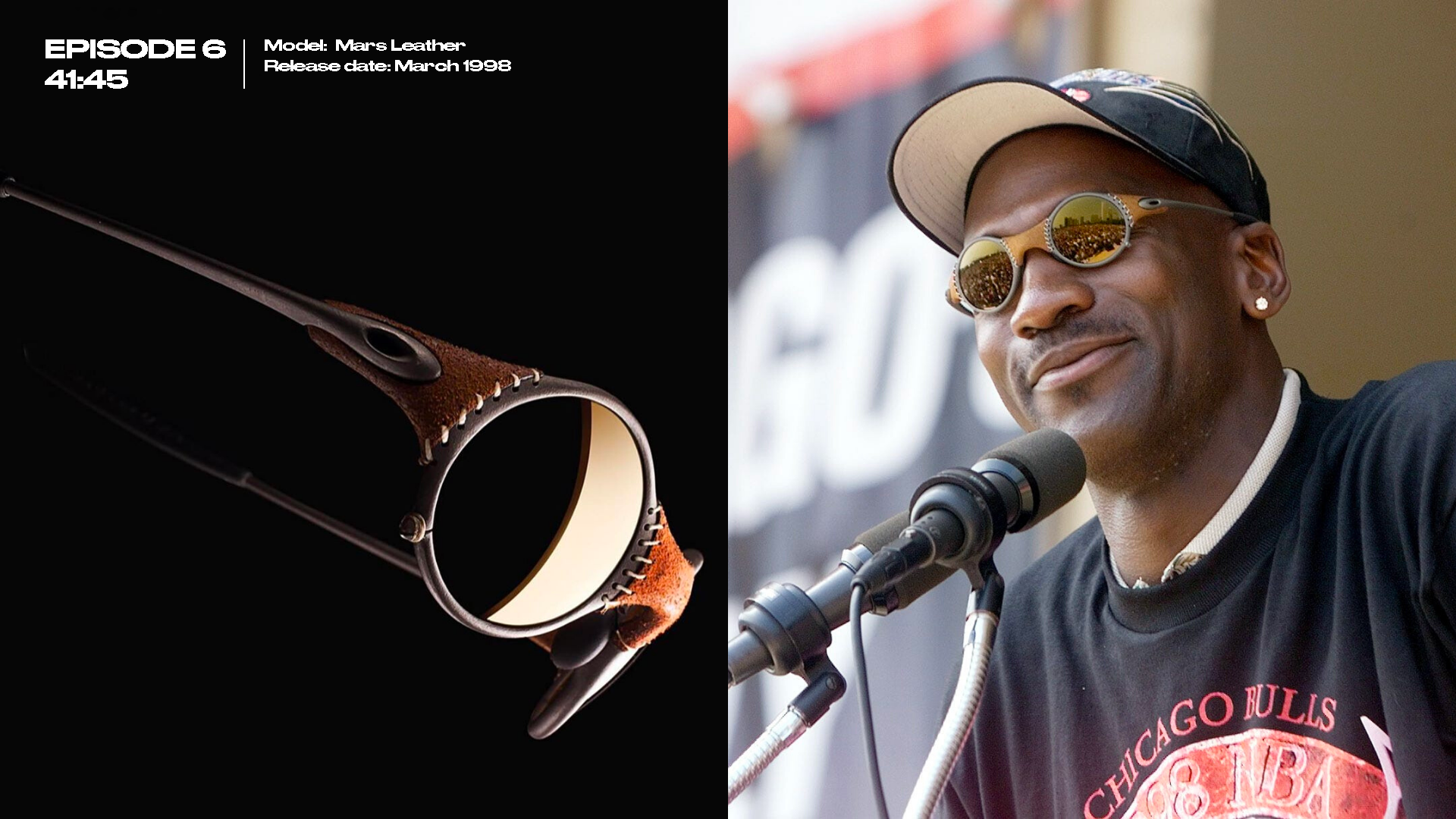 During the 10 episodes, MJ wore the Romeo, the Pro M Frame, the Straight Jacket, the Trenchcoat, the T Wire, the M Frame, the Eye Jacket but above all the Mars Leather, launched on the market in March 1998 and worn on the occasion of the parade for the second threepeat of the Chicago Bulls.