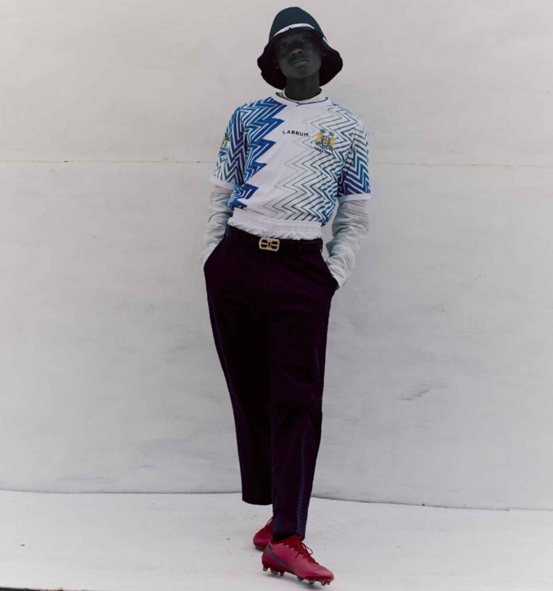 It is a series of items produced in collaboration with LABRUM London, a brand founded by Foday Dumbuya, a native of Sierra Leone and a former Nike designer, who uses fashion to tell the story of the communities of West Africa with the intent to fill the cultural gap present with the West.