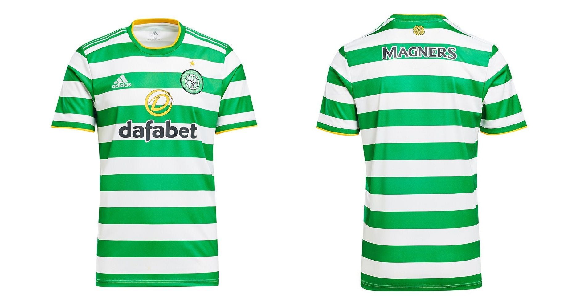 The design remains the classic one, with green and white stripes extending throughout the shirt, with the three stripes covering only the shoulders and the collar and the edges of the sleeves finished in yellow, just like the sponsor "Dafabet". The kit is completed with traditional white shorts with green details and white socks with green stripes.