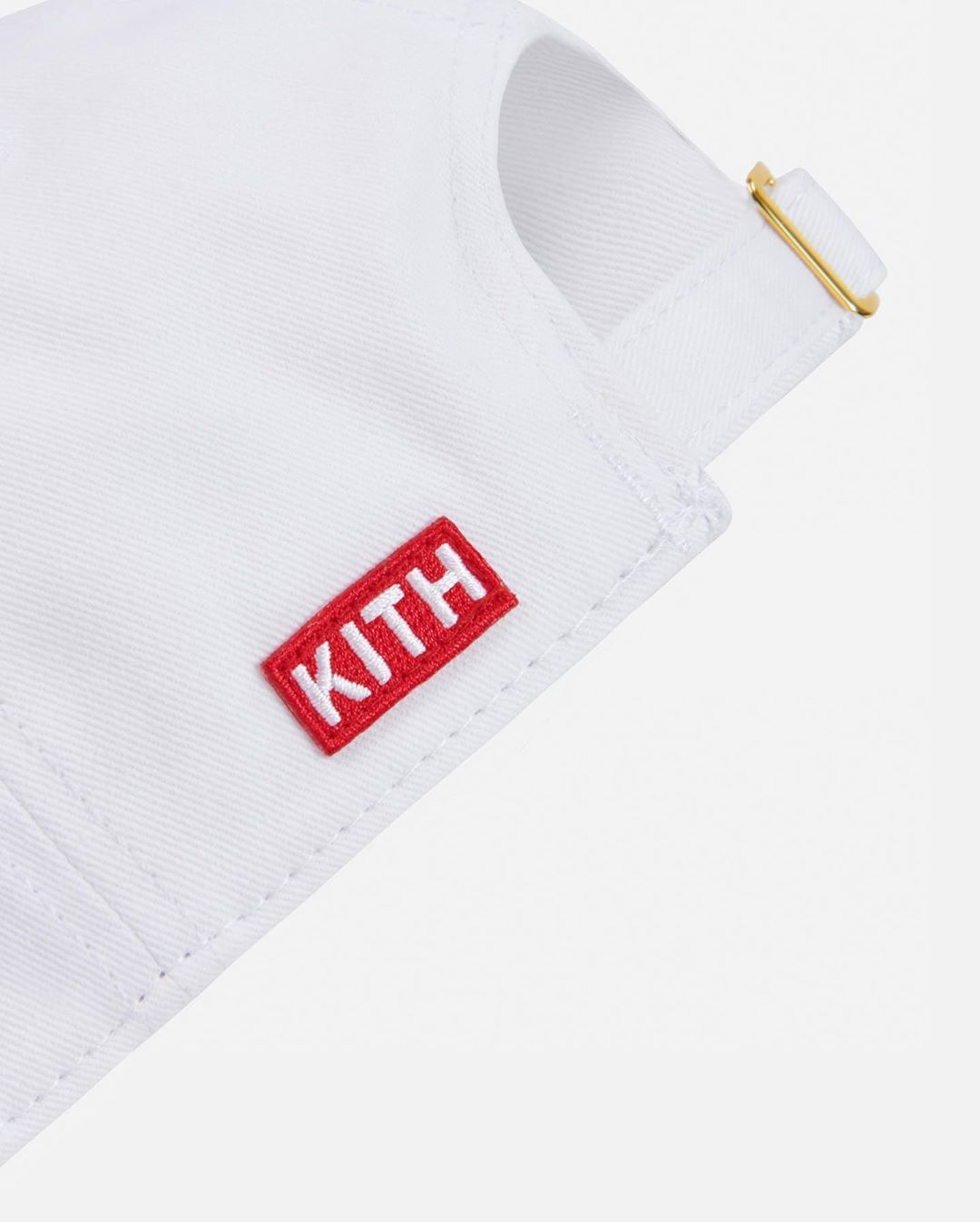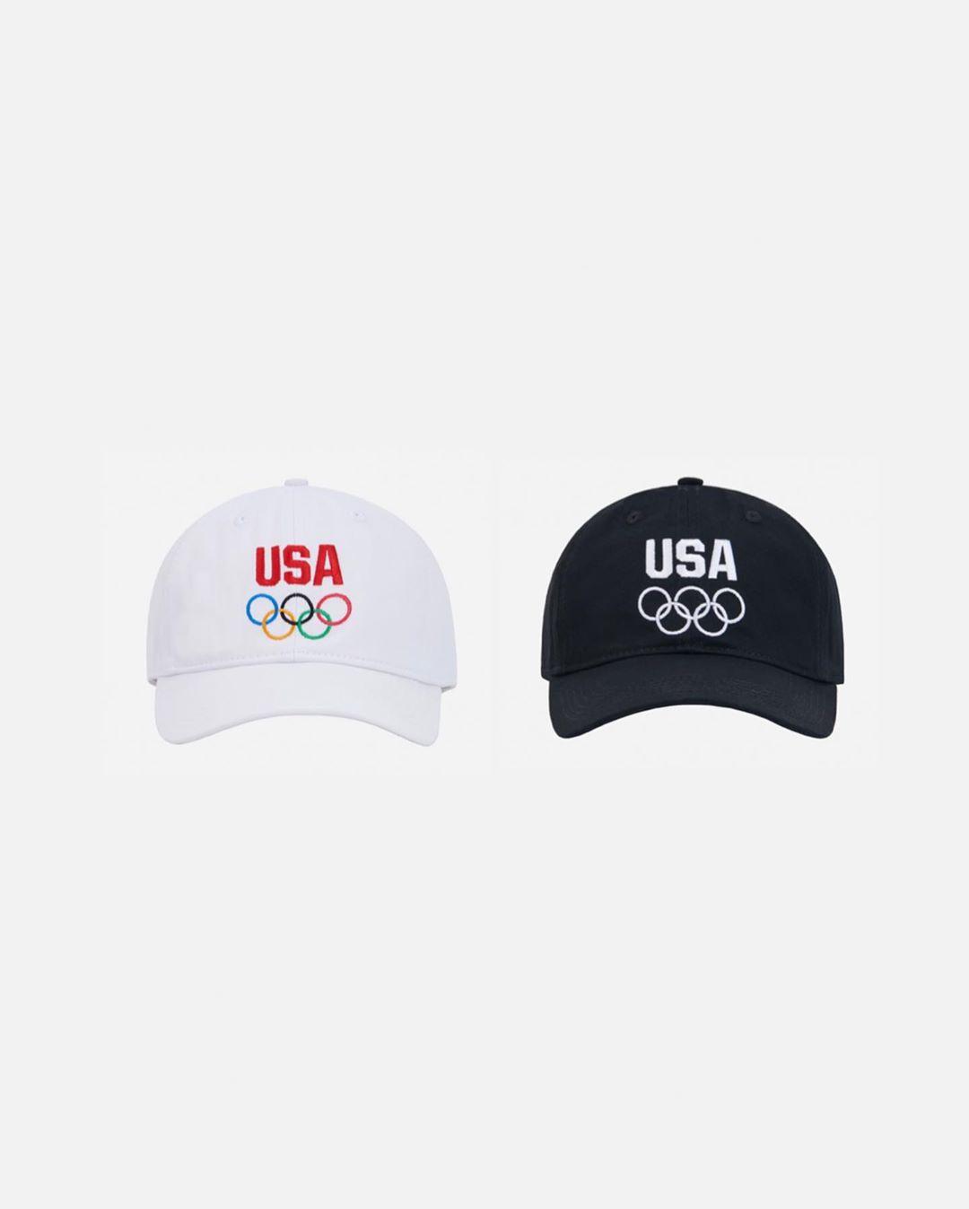 The flag also returns in the lower part, while the USA stars and stripes stand out in the back accompanied by the 5 Olympic circles. Another not inconsiderable detail is the high-cut collar; here too there is the motif of the American flag printed on the lining. The baseball cap - black and white - is an integral part of the collection and matcha perfectly with the rest of the outfit made by KITH. Simplicity makes it perfect: KITH logo on the side and double USA logo plus Olympic rings.