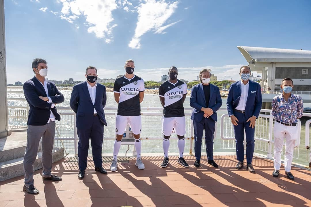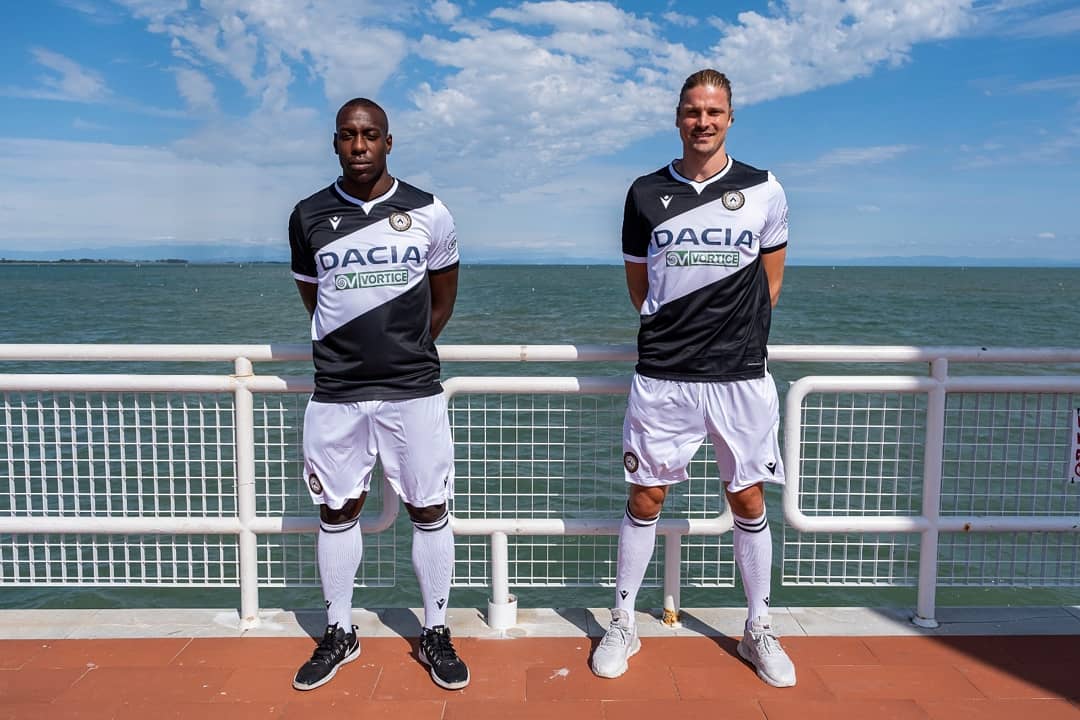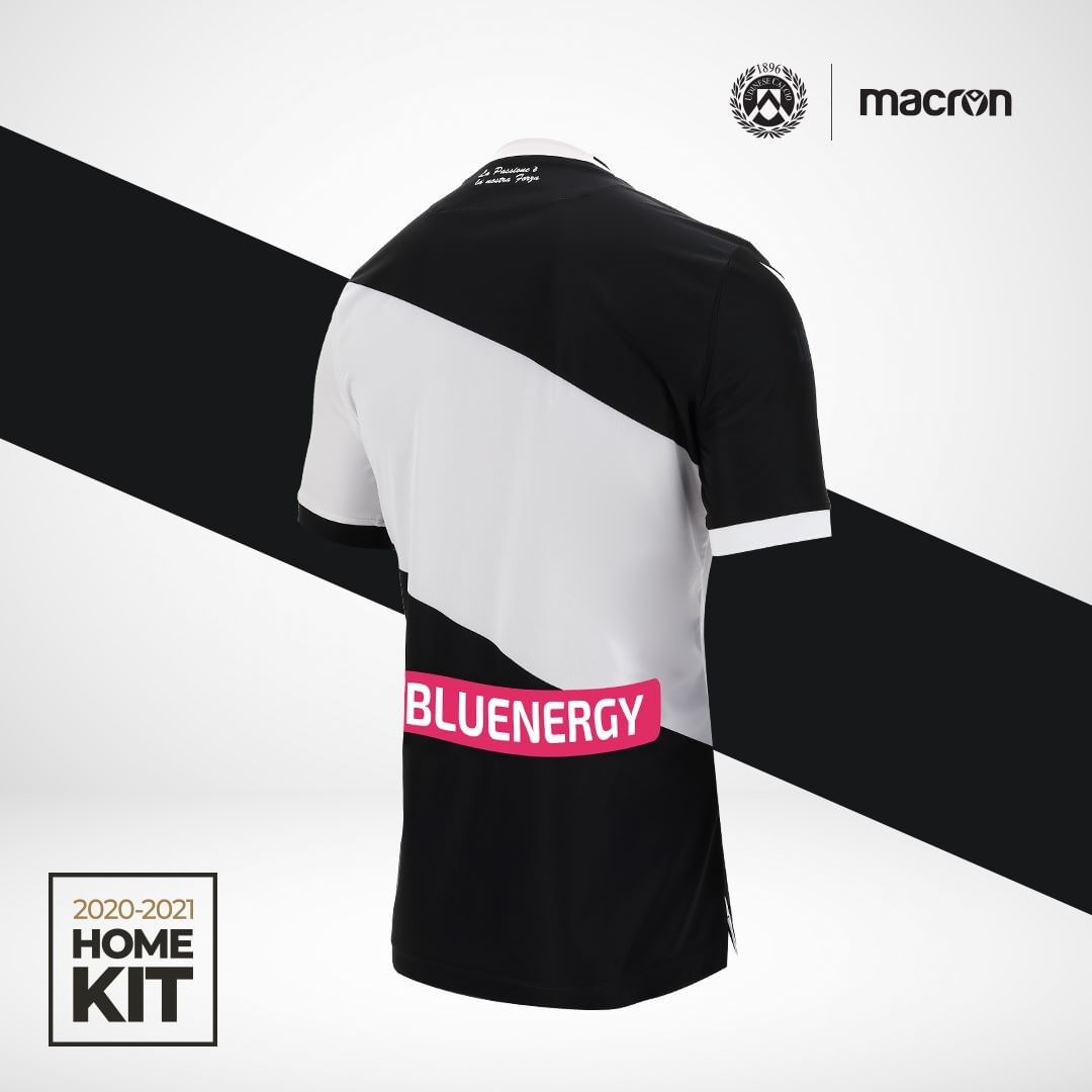 A real design revolution for Macron that completely eliminates vertical stripes to make way for a single diagonal band, typical of the 1980s. Via an element that has characterized Udinese for years - even if they were little used last year - and inside a new reason to try to take that step towards streewear that almost everyone is trying to take. On the back of the collar appears the writing "The first bianconeri of Italy".
