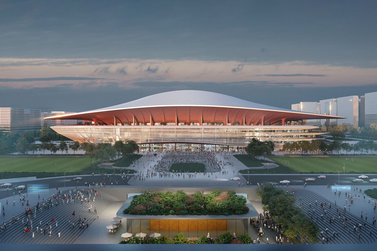 The design of the new stadium bears the illustrious signature of Patrik Schumacher, director of the Zaha Hadid Architects Studio and former author of works such as the Vitra Fire Station and the BMW Central Building in Germany and the MAXXI in Rome. The new building strongly recalls the traditional characters of Chinese architecture thanks to its sinuous shapes. The composition of the facade is a clear architectural reference to the Hall of Supreme Harmony, the heart of the outer court of the Forbidden City in Beijing. As in the ancient imperial palace in Beijing, the garden terraces of the new stadium horizontally mark the 5 levels of the building, the 12 slender columns in turn divide the composition vertically, in the center of the facade the memory of the 3 access stairs to the ancient palace and finally the roof that evokes traditional Chinese architecture in the characters.