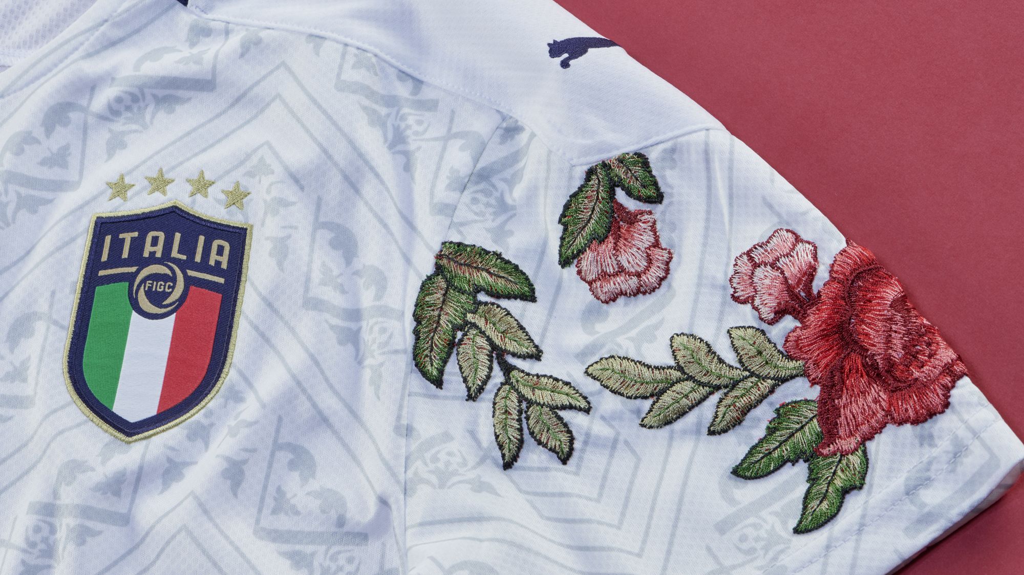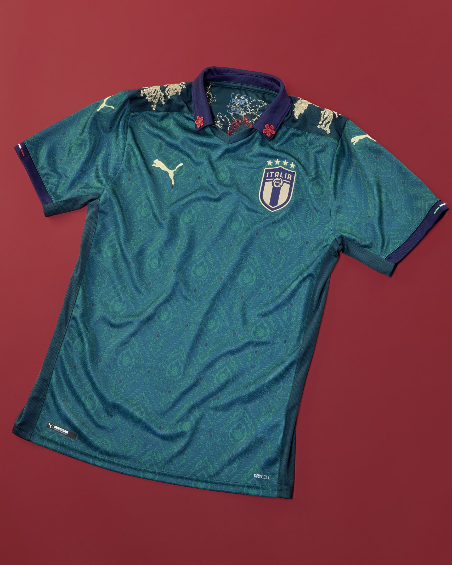 A tribute to Renaissance art and the culture of Italian haute couture. So Puma, in collaboration with the designer of custom football shirts The Football Gal (pseudonym of Diana Al Shammari), ha rivisitato i tre kit della nazionale italiana. Con elementi di natura, geometria e simmetria, il lavoro della designer va a completare il modello rinascimentale con cui erano stati realizzati i kit da gioco Puma.