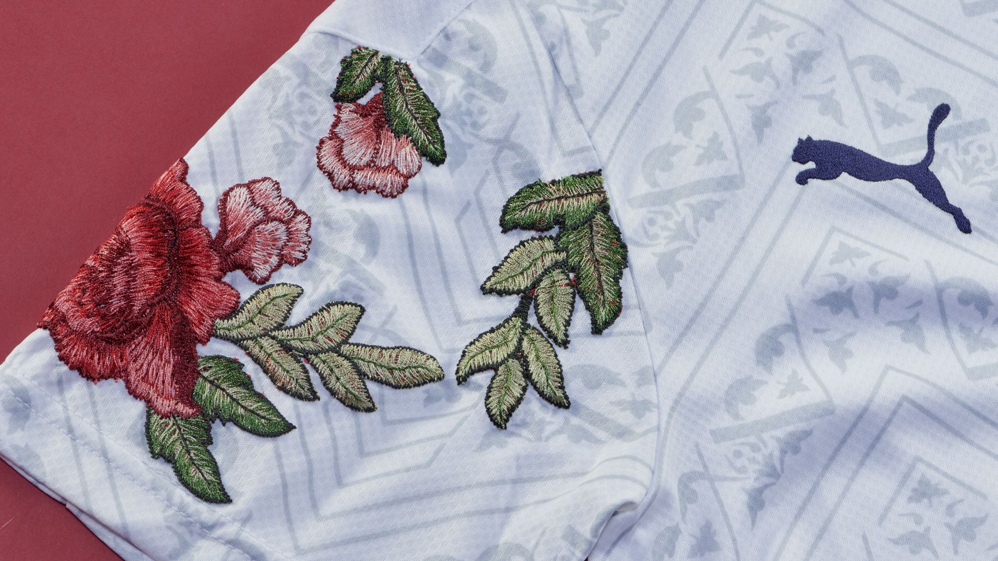 The jerseys - the first blue, the second white, the third green - have the same pattern as the game version, but the template is different. The Football Gal and Puma have included in the uniforms motifs that recall art deco, Renaissance art, haute couture and art nouveau, in place to create games of original symmetry and geometries along all the jerseys. The collars and shoulders are decorated with floral motifs and braided lines as if they were brambles of a plant.