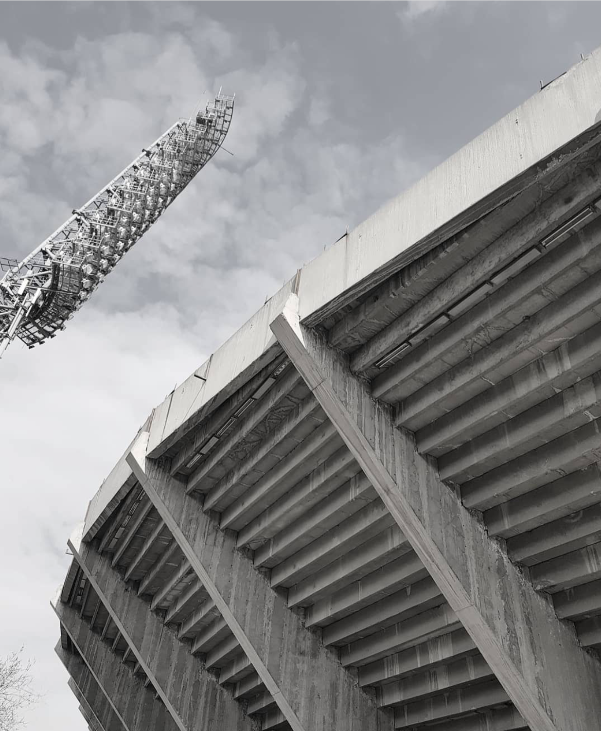 The San Siro Stadium has been renovated and expanded several times in its history, going from an initial capacity of 30,000 spectators in the 1930s to 65,000 in the 1960s and 80,000 today. The sequence of rings fascinates the entire system and is, together with the towers on the sides to access the third ring, the characterizing element of the stadium. Its brutalist forms are exalted precisely in the concrete rings visible from the outside, as if the Meazza offered its ribs to the vision of the spectators.