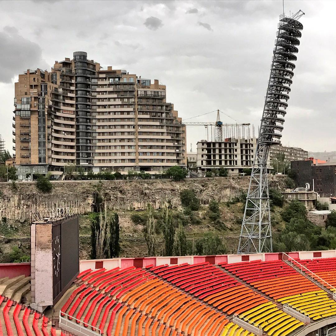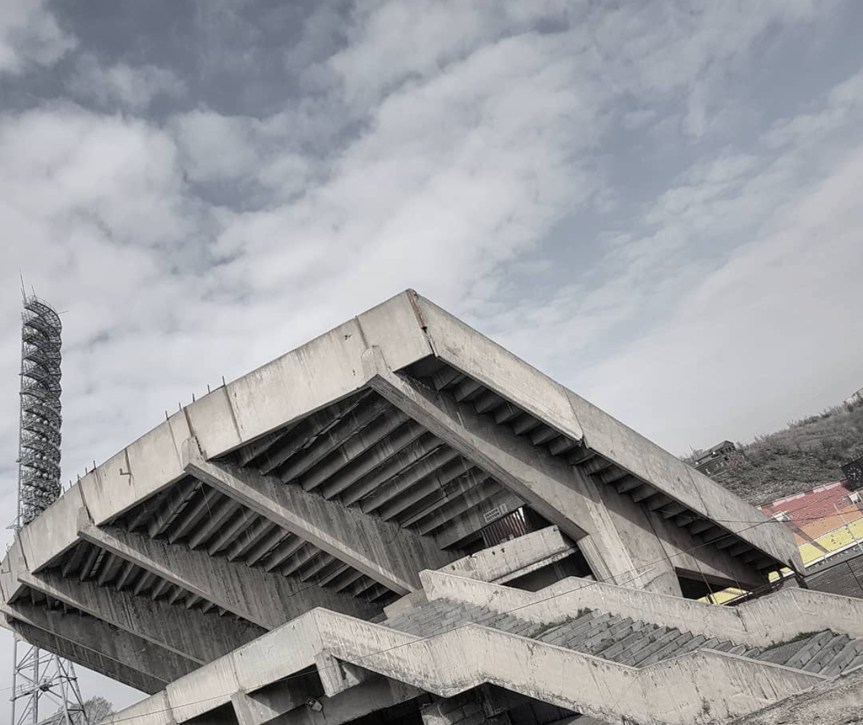 Like many buildings in Eastern Europe, the Stadium of Erevan was built following the principles of Brutalist architecture, which in those territories - from the Black Sea basin to the Balkans - were an aesthetic mantra in construction. It was Anastas Mikoyan, director of the Soviet Council of Ministers, who decided to have a stadium built in Erevan, taking advantage of the concaveness of the valley in which it still stands. Despite work on upgrades for car seats, press stands and lighting, the stadium has maintained its ring structure, and especially its concrete features, also visible from the adjacent street.