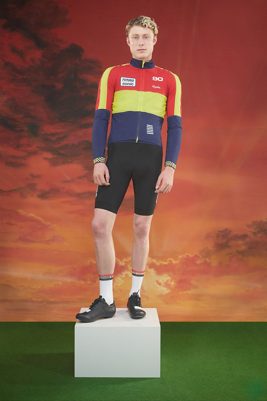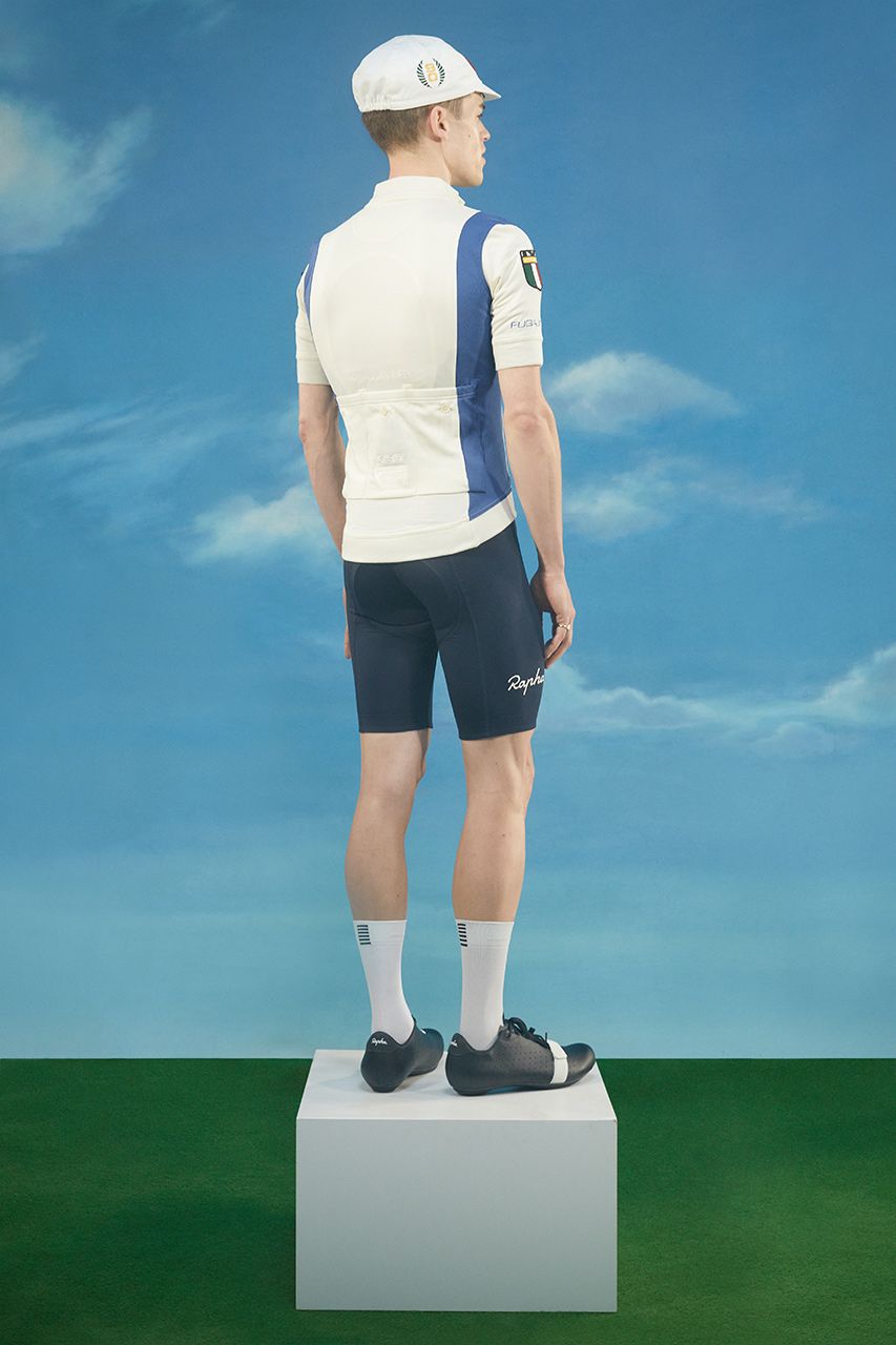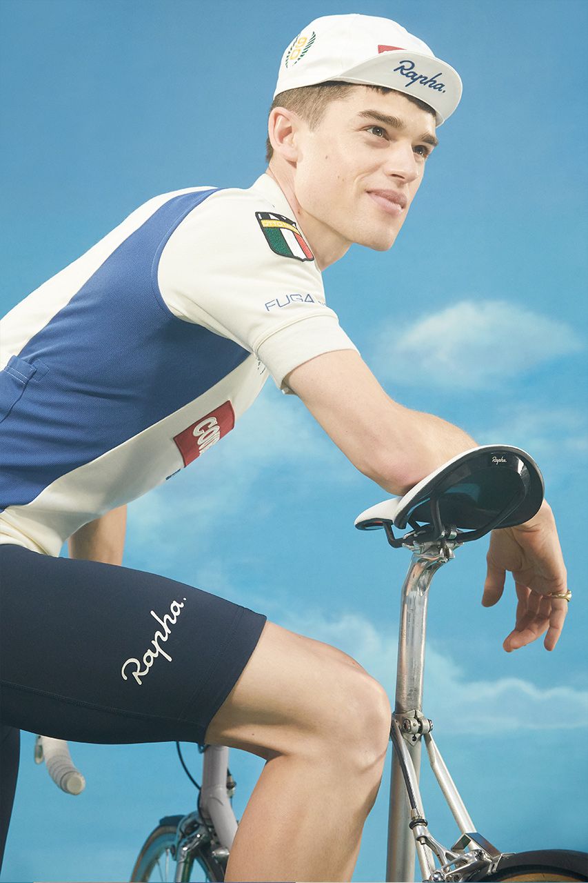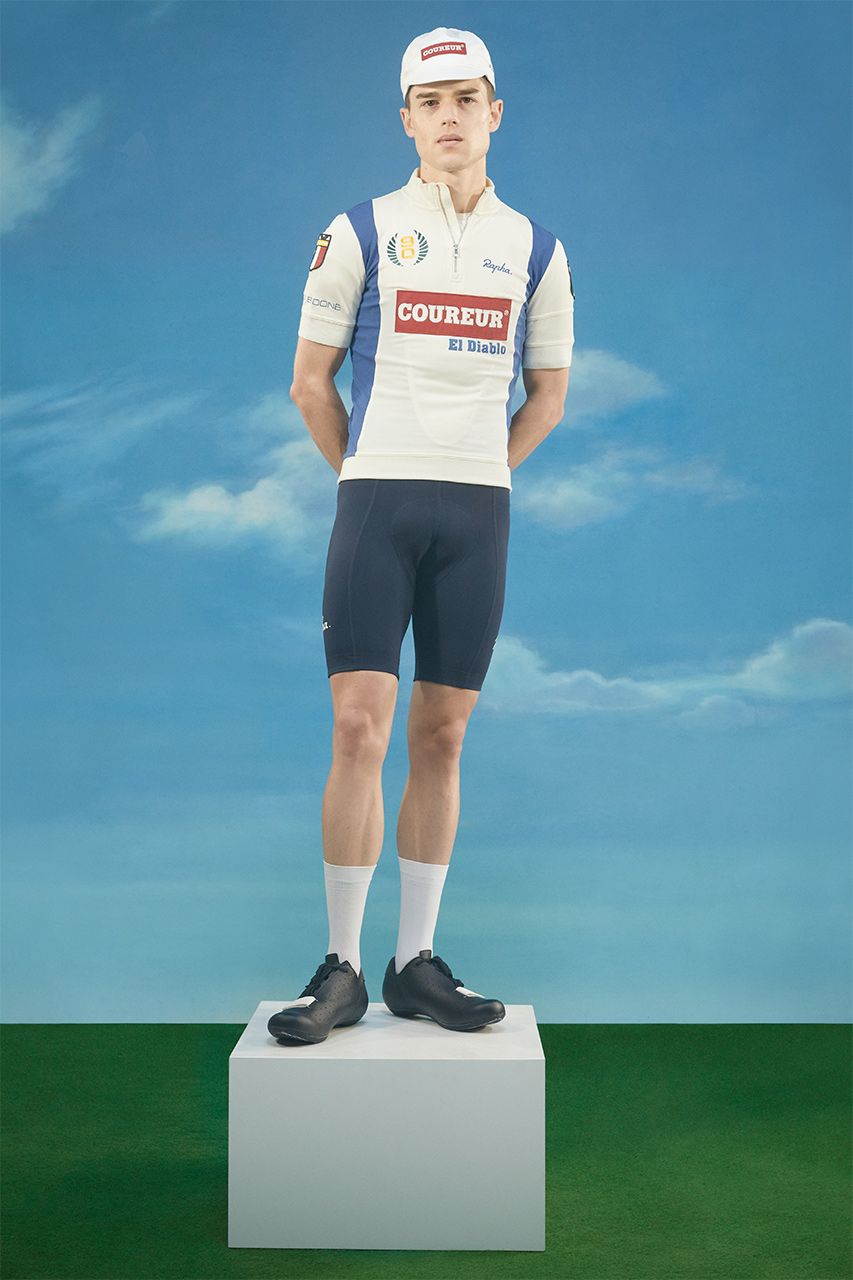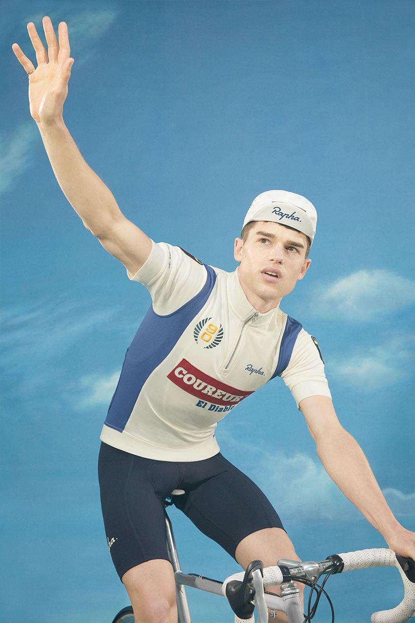 Rapha's collection consists of three models of bike outfits (sweatshirt, shirt and shorts) and some items such as glasses, socks, hat and vest. Sweatshirts and jerseys are a reference to the cycling tradition of the 1990s, when large companies such as Toshiba invested in cycling and the industry experienced important technological development. Rapha's references recall this important period in the history of cycling with the colors and design of those jerseys, divided into the three Models Coureur, Lightweight and Futuroscope, respectively inspired by the cyclist El Diablo Claudio Chiappucci, the revolutionary design of the Toshiba team, and the Futuroscope theme park, where on some occasions the first stage of the Tour started in the nineties. The jerseys and sweatshirts are made of modern materials to ensure the rider the best elasticity during racing. Rapha took great care of the details in each garment, trying to make the products as original as possible, such as the characteristic of the three studs in the Coureur jersey.