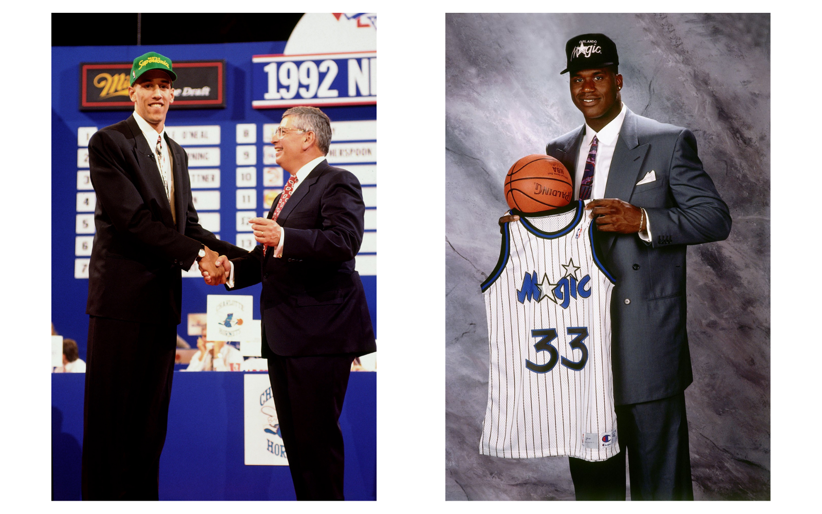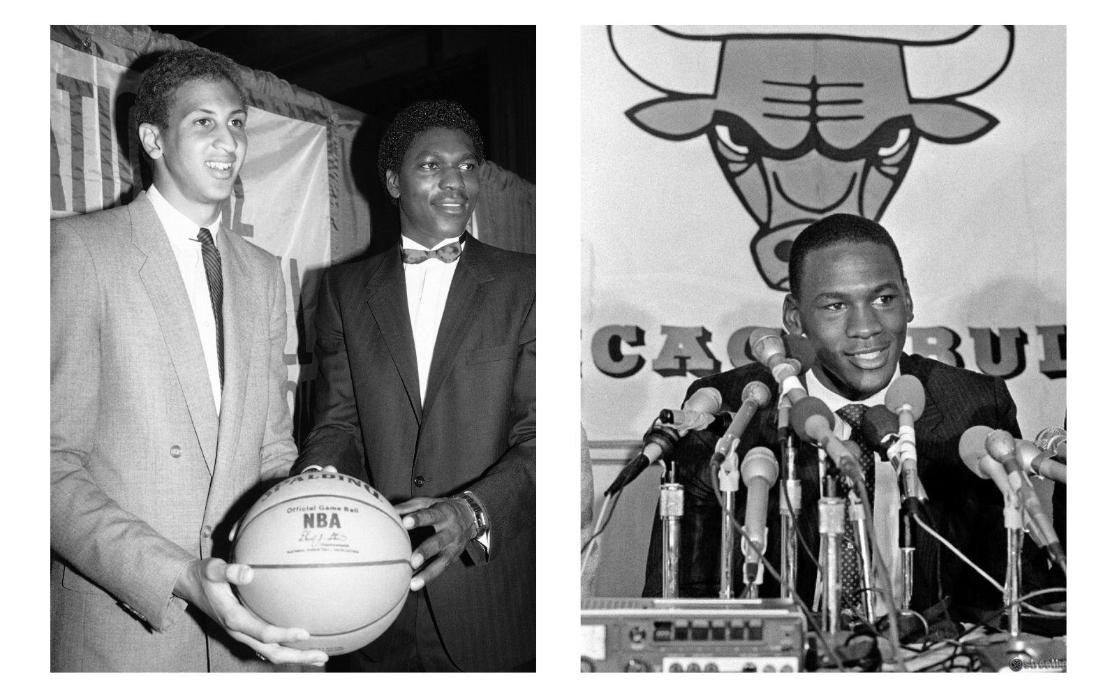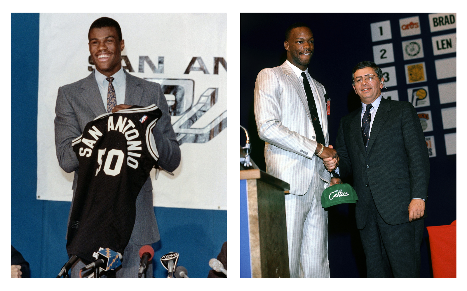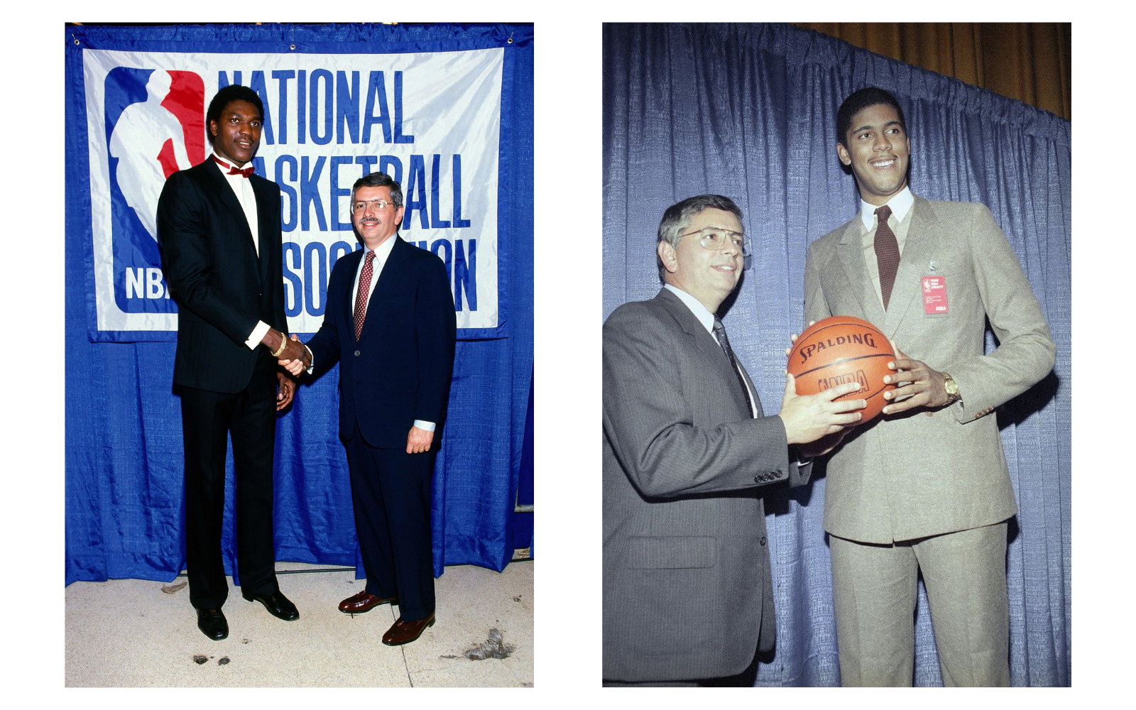 From the innate elegance of Earvin "Magic" Johnson to the first stylistic disasters, especially that of Chuck Person, called in 1986 by the Pacers with pick #4 and who showed up on the most important night of his career with an unsuitable fluorescent smoking. Great sobriety for the rest, with some high notes played by Isiah Thomas and Vlade Divac, European by birth, growing up, but nowhere near in style. Michael Jordan's outfit dates back to the day he signed with the Bulls, with the great work of mom Deloris in the service of Mike's elegance.