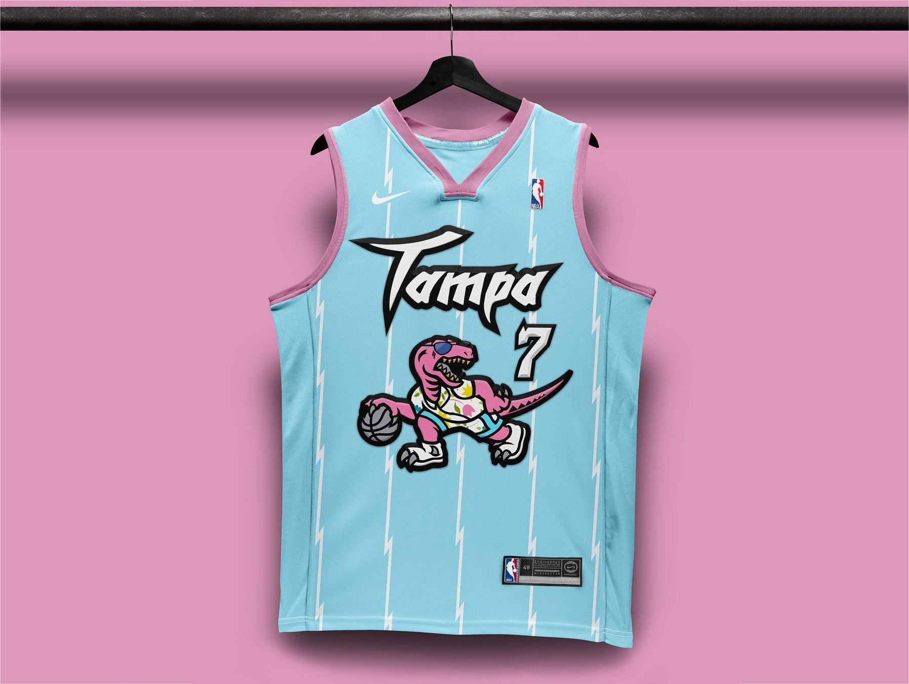 That someone is Luc Samanski, a sports designer who has published the hypothetical new jersey of the franchise in the "Tampa Raptors" version on his Instagram account. She has chosen pastel pink and light blue colors, typical of Florida and in some ways close to the palette chosen by the Heat for the City Edition jersey. Samanski didn't use the logo seen previously, but reworked the Raptors' most iconic jersey by re-adapting it chromatically and adding a pair of sunglasses and a Hawaiian-style shirt to the dinosaur.